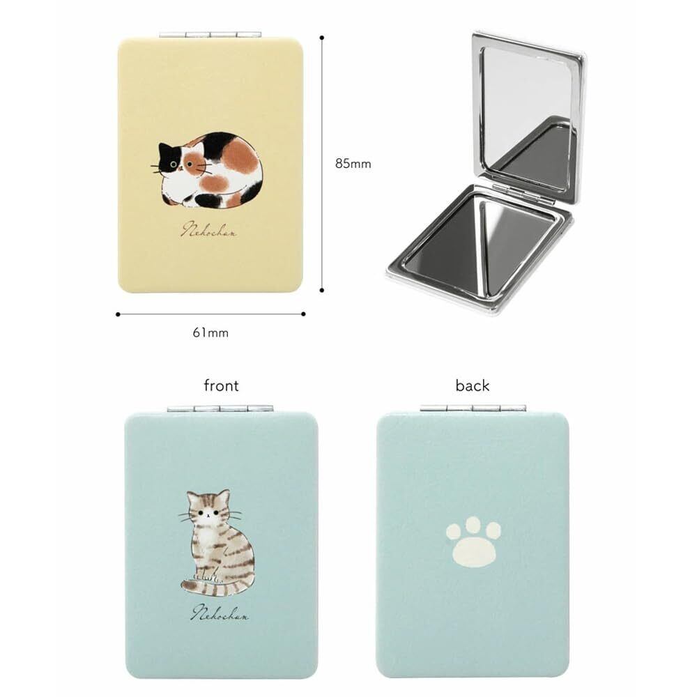 [グランサンク] コンパクトミラー 可愛い キャラクター おしゃれ 軽量 PU素材 ハンドミラー コンパクト 鏡 シンプル 猫ちゃん【ミケ (薄香)】