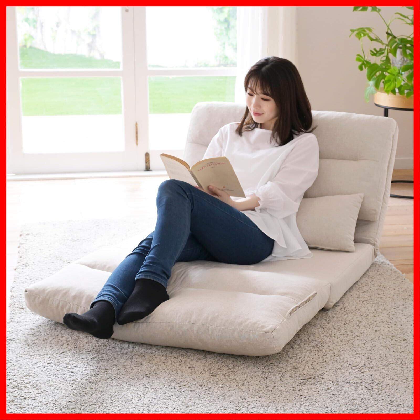 山善(YAMAZEN) ソファ ソファーベッド 座椅子 3WAY ゆったり 一人掛け クッション付き 腰部14段階 リクライニング 簡易ベッド ローソファ 幅80×奥行70/193.5×高さ13.5/57cm 一人暮らし 完成品 アイボリー GAS-80(IV) | hananoki