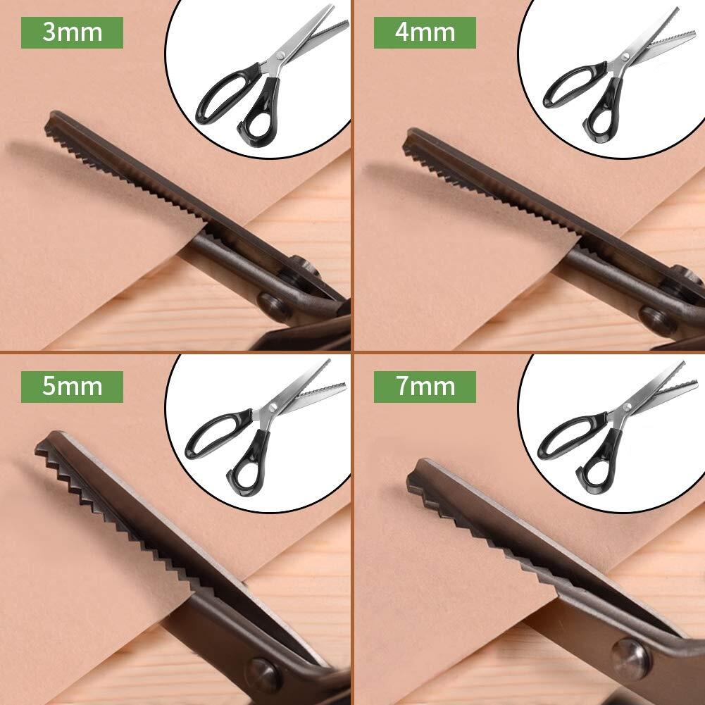 ピンキングはさみ 洋裁鋏 ステンレス製 ラウンド/トライアングルエッジ ハサミ プロはさみ 布 紙 クラフト 裁断用具 ハサミ・カッティングツール 左右手兼用 手芸 糸切 裁縫(3 4 5 7 mm)(5mm)