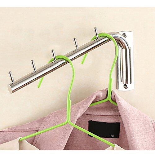 IKENOKOIウォールハンガー 壁掛けフック 回転可 服/帽子/鞄収納 ステンレス 玄関/浴室/キッチン/ベッドルーム(5連 A)