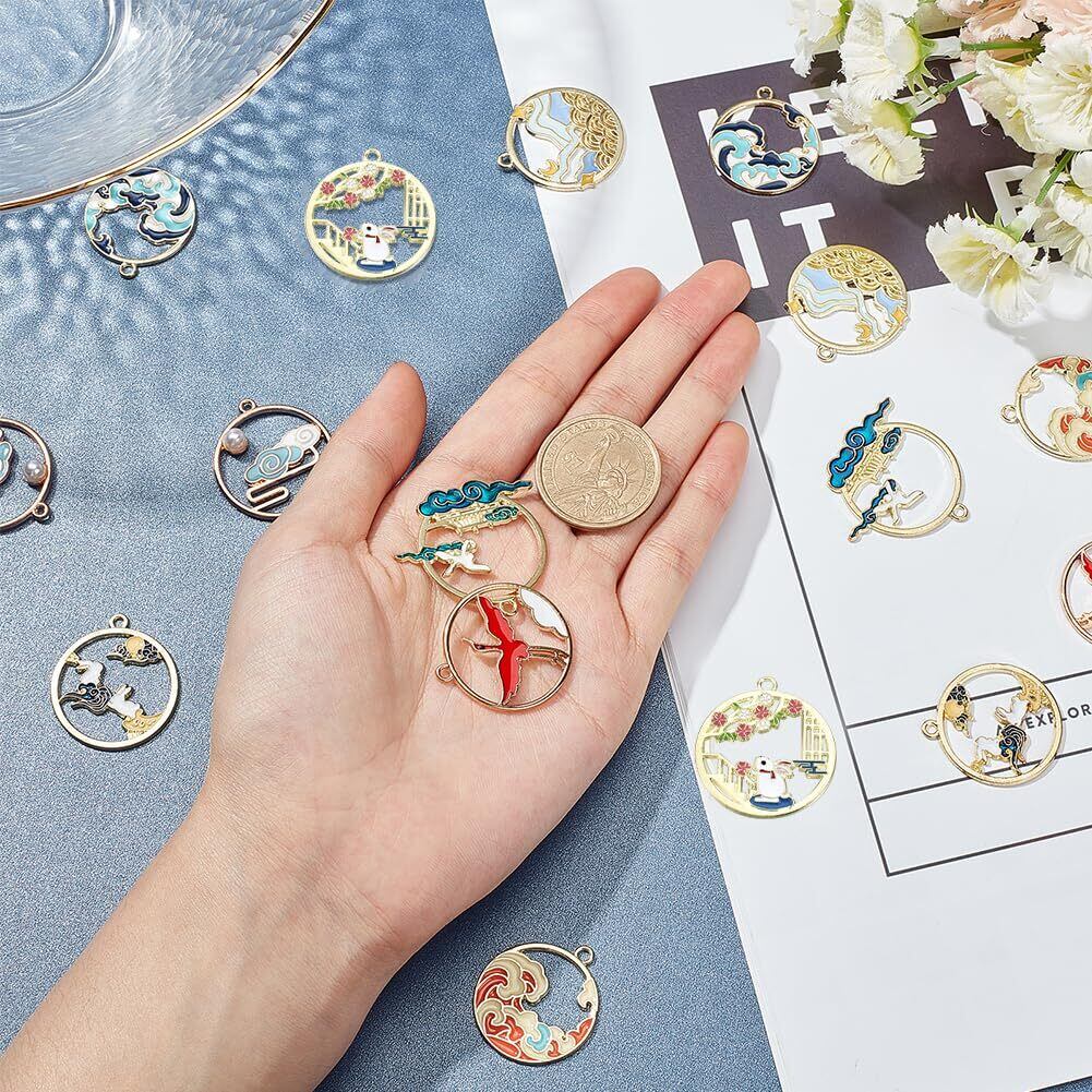 SUNNYCLUE 和風の恋 16個8種 和風 チャーム 鶴 浮世絵 うさぎ チャーム つる 海 兎 パーツ コウノトリ 波 ピアス 雲 海洋 イヤリング 白雲 オーシャン フレーム ネックレス 寺 ブレスレット 山 浪 キーホルダー メタルパーツ エナメル 合金 マカロン アクセサリー 基礎パーツ ジュエリー作り レディース デコキット クラフト手芸 手作りハンドメイド キット DIY飾り物