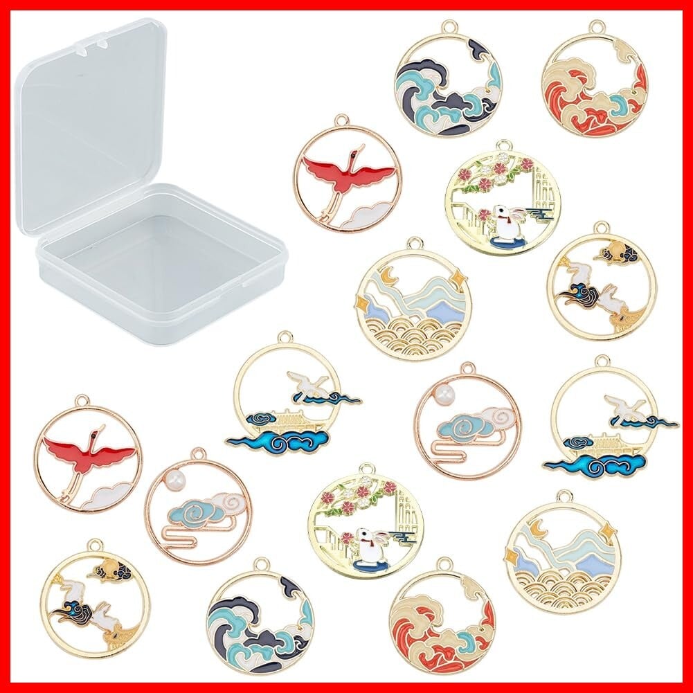 SUNNYCLUE 和風の恋 16個8種 和風 チャーム 鶴 浮世絵 うさぎ チャーム つる 海 兎 パーツ コウノトリ 波 ピアス 雲 海洋 イヤリング 白雲 オーシャン ネックレス 寺 ブレスレット 山 浪 キーホルダー メタルパーツ エナメル 合金チャーム マカロン チャームパーツ アクセサリー 基礎パーツ ジュエリー作り レディース デコキット クラフト手芸 手作りハンドメイド キット DIY飾り物