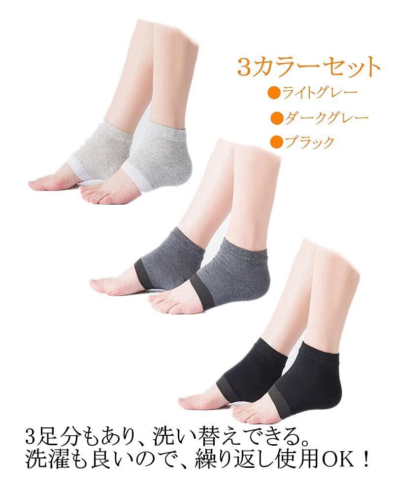 【セット内容】かかと 靴下3足分セット 【カラー】ブラック ダークグレー ライトグレー 【素材】綿 ポリウレタン 【サイズ】フリー 男女兼用