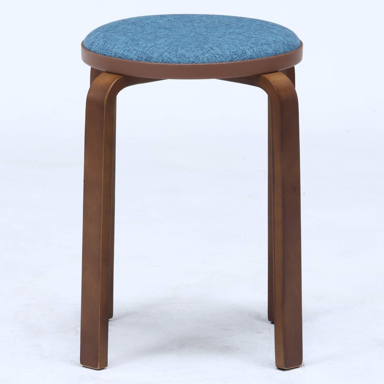 不二貿易 曲木スツール スタッキングチェア 幅32×奥行32×高さ47cm ブルー ブラウン ファブリック コンパクト 組立商品 14547
