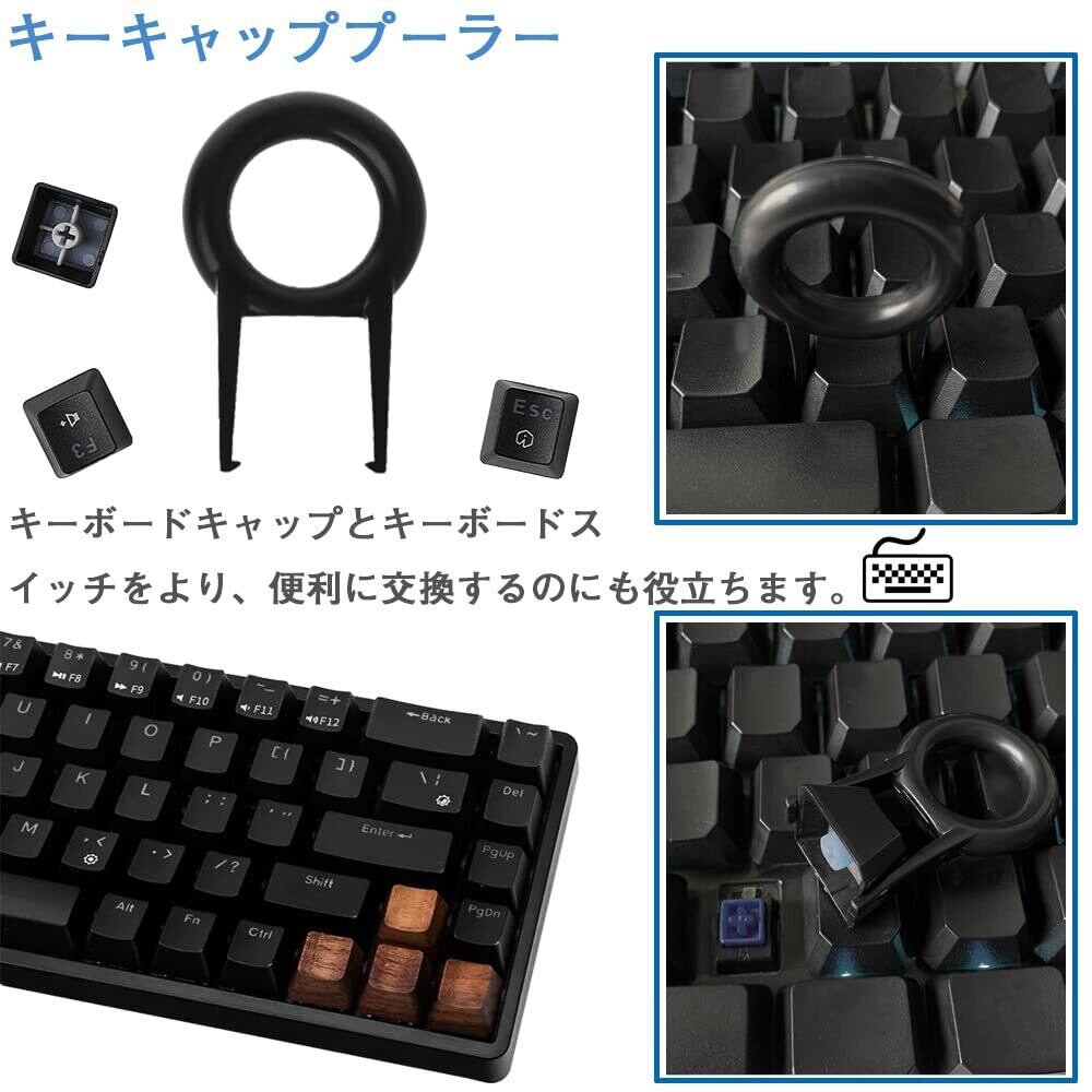 サイズ:キートップ引抜工具 12.5*2cm、平型キーキャッププーラー4.4*2.7cm、円形キーキャッププーラー4.5cm、ステンレス製シャフトプーラー4*2cm、O静音化リング8*1.5mm、クリーニングブラシ18.5*2cm
