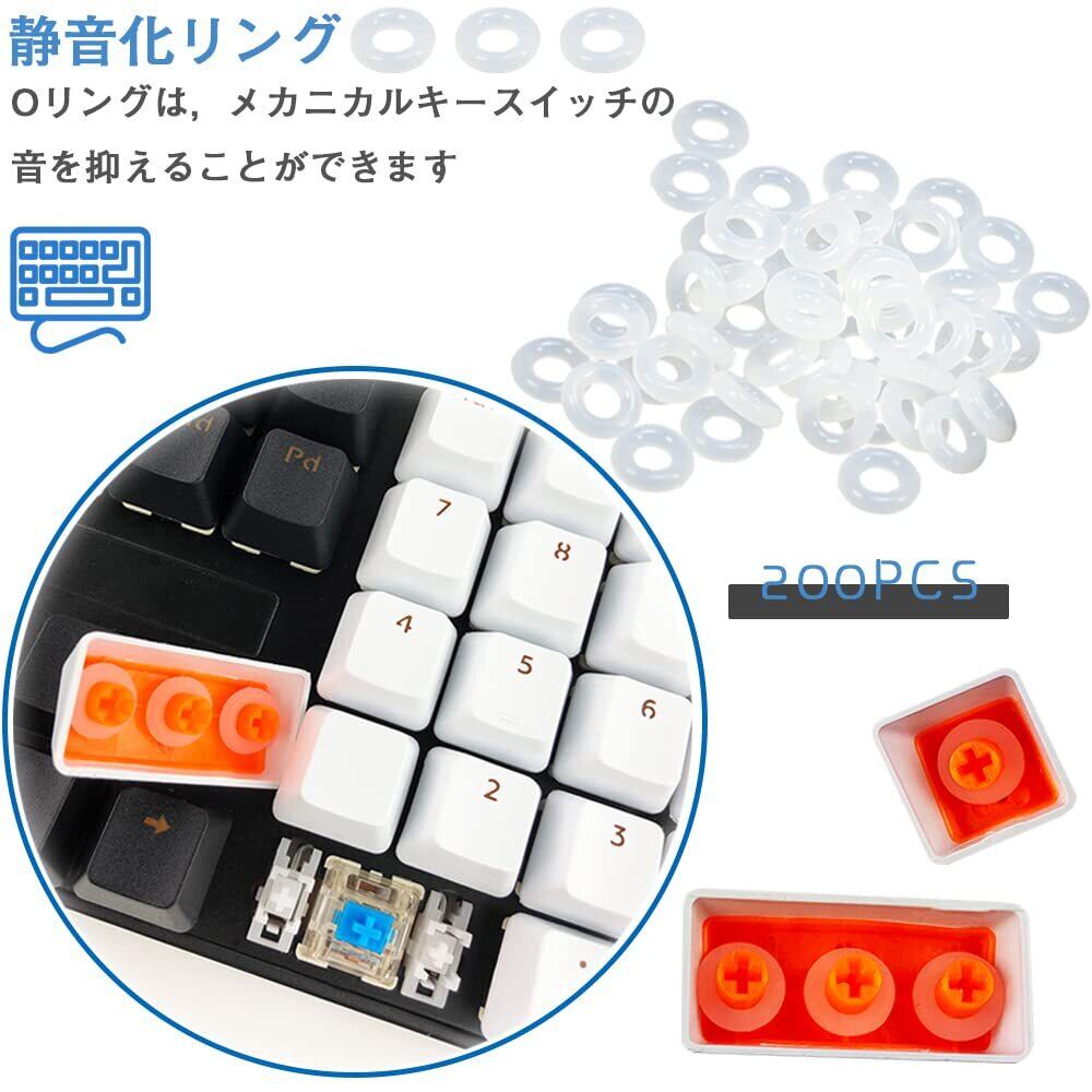 静音化リング200個入り、O-リングはメカニカルキーボードスイッチのノイズを低減します。高速タイピングの負担を軽減し、タイピング時のキーキャップとスイッチの接触音も低減します。ステンレス製シャフトプーラー、力入れすぎずに引き抜けるように設計されています。握るときに力がいらず、隙間にも入れやすい。