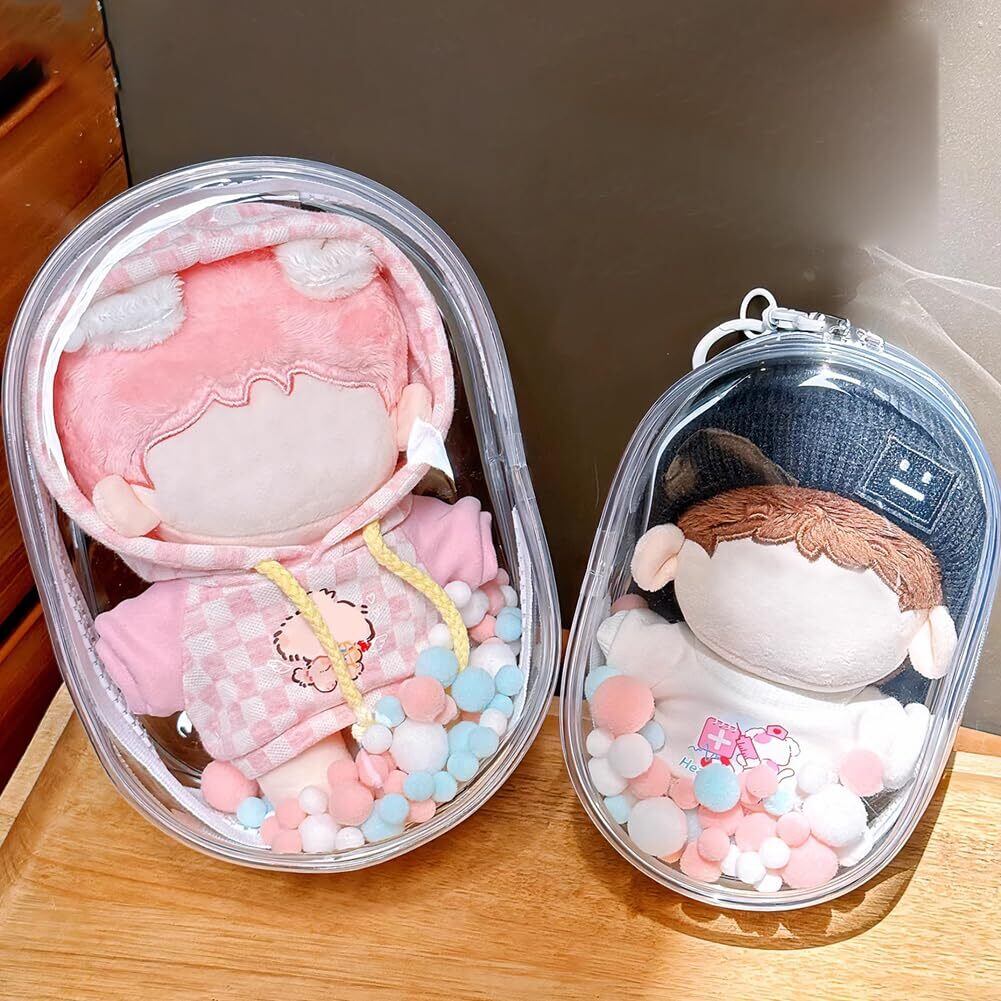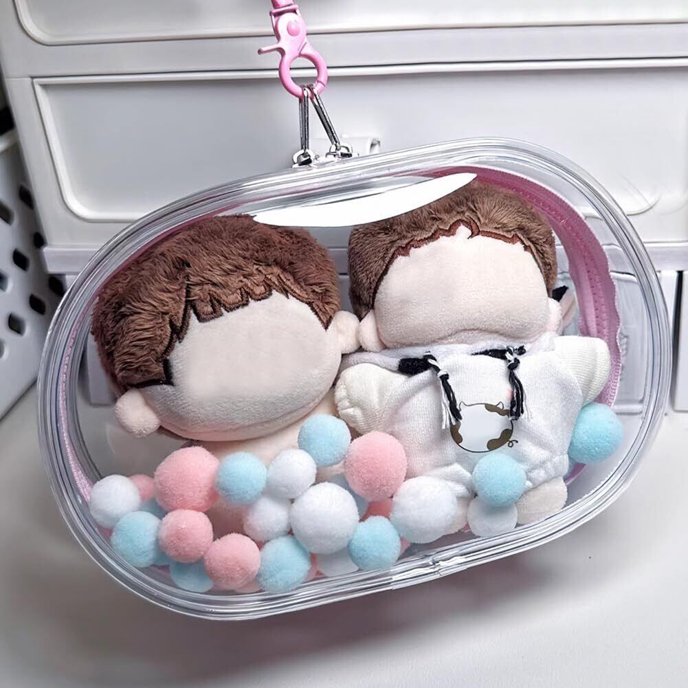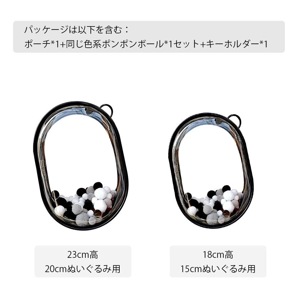 YUYAKESHI ケース 痛バック 楕円形 防塵 ぬいポーチ 外出 見せバッグ 人形入れ ぬいぐるみ用 両面透明 クリア 厚手PVC 装飾 キーホルダー付(ブラック18CM高) | hananoki