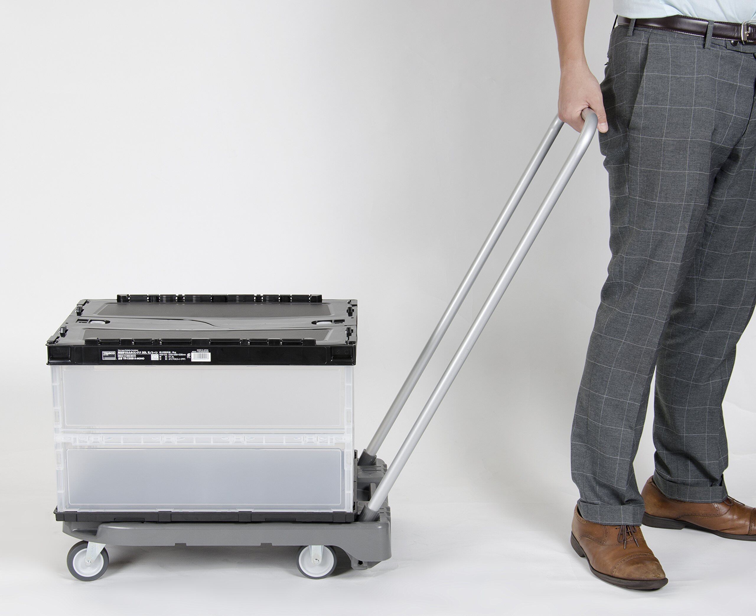 トラスコ中山(TRUSCO) 薄型折りたたみコンテナ モノトーンカラー 50L ロックフタ付 TR-C50B-A-MONO 収納ケース 収納ボックス