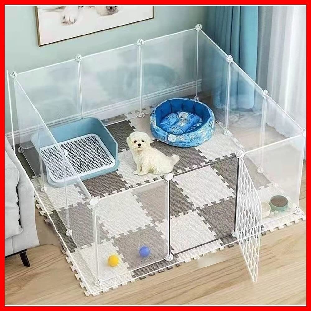 √【軽量なプラスチックパネル、ペットの様子が見える】半透明のパネルを組み立てると、ペットの姿を一目で確認できるフリースペースが完成。パネルは軽量なプラスチック製のため、力仕事が苦手な人でも扱いやすいですよ.