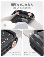 ⌚【全面保護】製品全体はTPU素材を採用します。ケース表面の縁はプラスチックではなく、アルミニウム合金製の枠で包みます。側面からの擦り傷、衝撃や摩耗を防止し、アップルウォッチを保護します。また、Apple Watchのスクリーンより少し高くすることで、スクリーンへの傷付きを効果的に防止します。