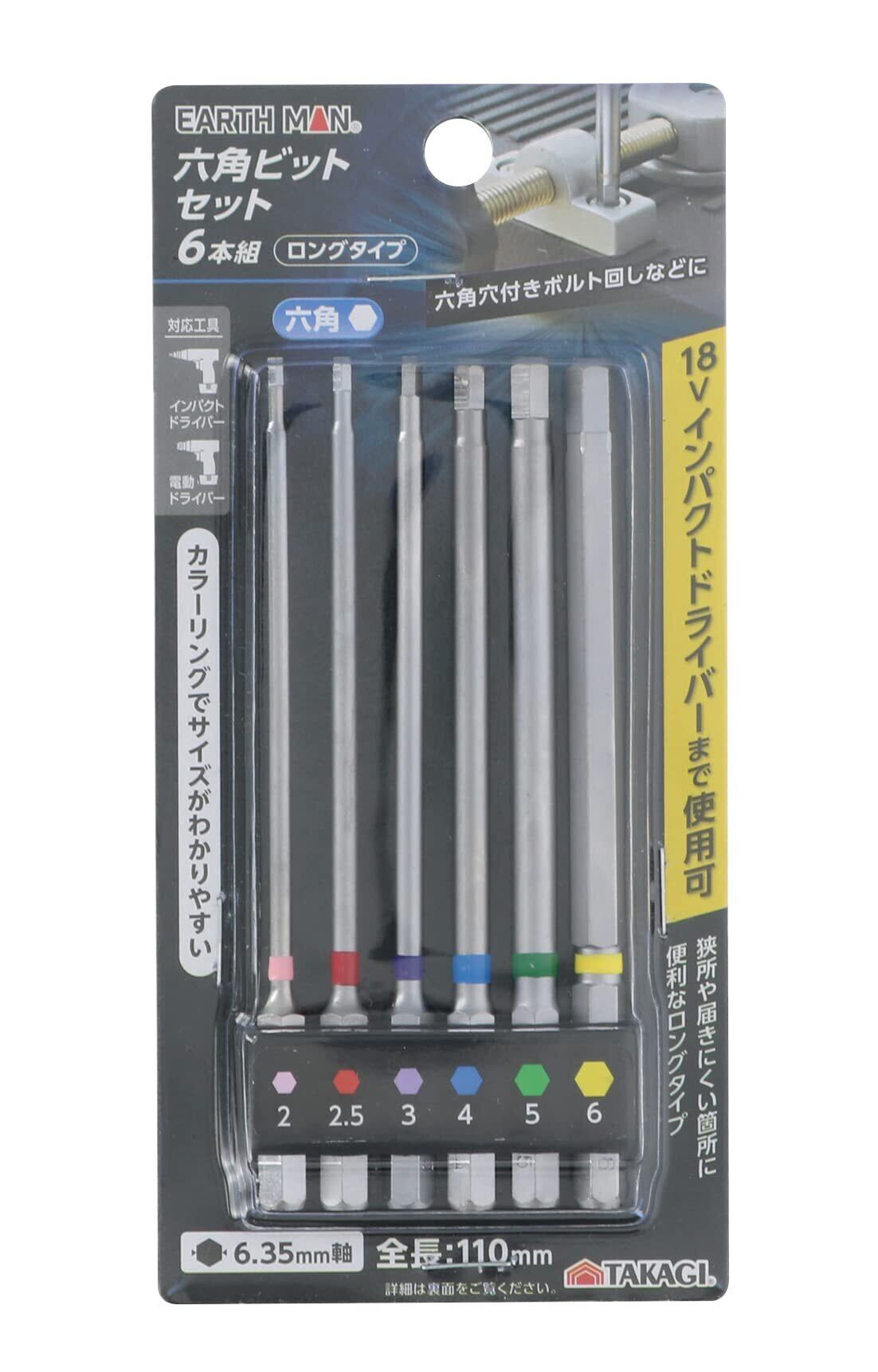 高儀(Takagi) EARTH MAN 六角ビットセット 6本組 ロングタイプ 電動ドライバー インパクトドライバー用