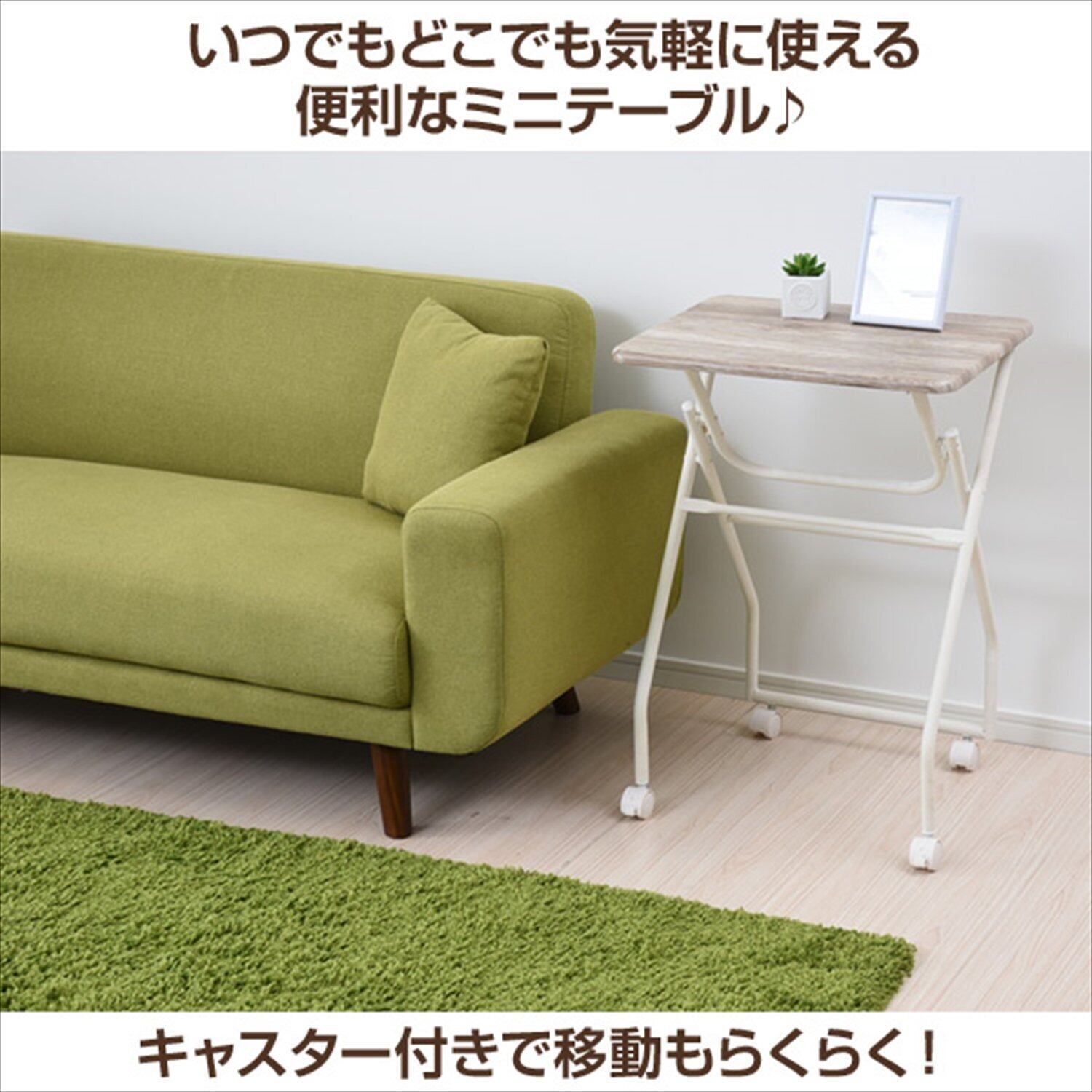山善(YAMAZEN) テーブル ミニ 簡単組み立て 折りたたみ式 キャスター付き サイドテーブル 幅50×奥行44×高さ70.5cm アンティークブラウン MST-5040(ABR/SBK)
