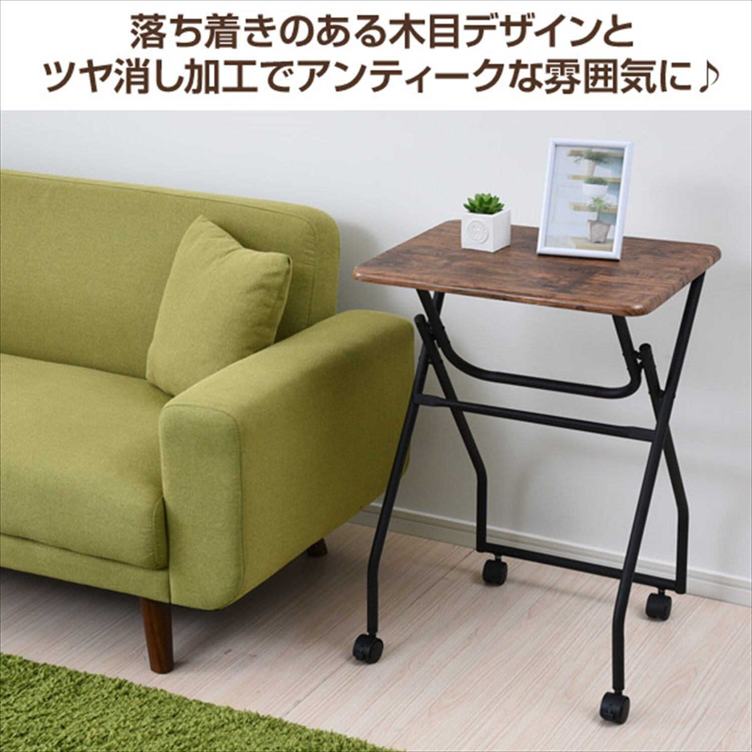 山善(YAMAZEN) テーブル ミニ 簡単組み立て 折りたたみ式 キャスター付き サイドテーブル 幅50×奥行44×高さ70.5cm アンティークブラウン MST-5040(ABR/SBK) | hananoki