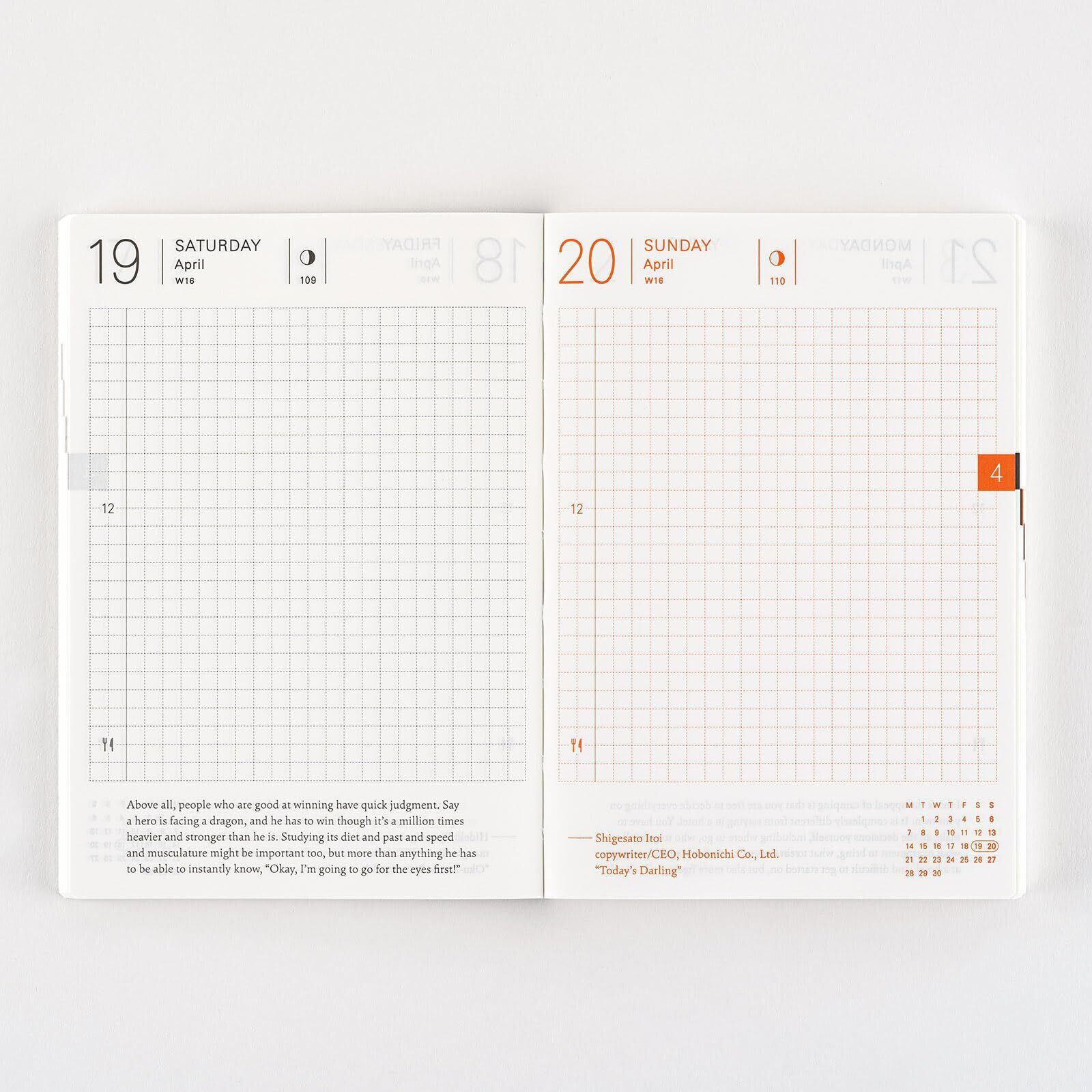 *右ページに「ミニカレンダー」を掲載(月曜はじまり)。