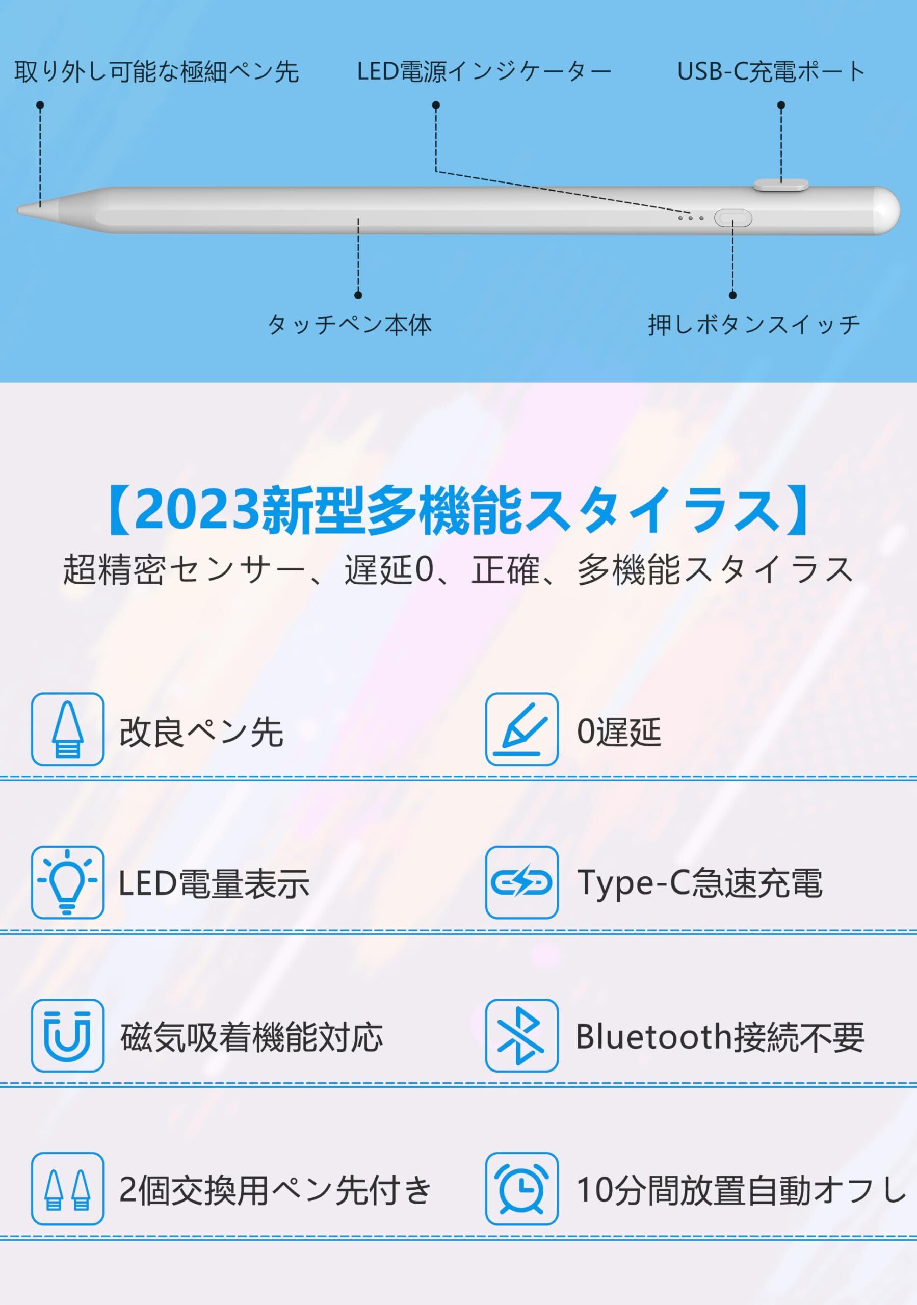 2025 最新 iPad ペン 第11 (A16)/10世代対応 傾き感知/磁気吸着機能/超高感度 タッチペン 誤作動防止機能 軽量 耐摩 USB type-c充電式 iPadペンシル第11 (A16)/10/9/8/7/6世代、Air 11"/13" M2/M3 2025 /Pro 11"/13" M4 2024 、Mini 第7/6 Gen、Air 3/4/5 Gen に対応