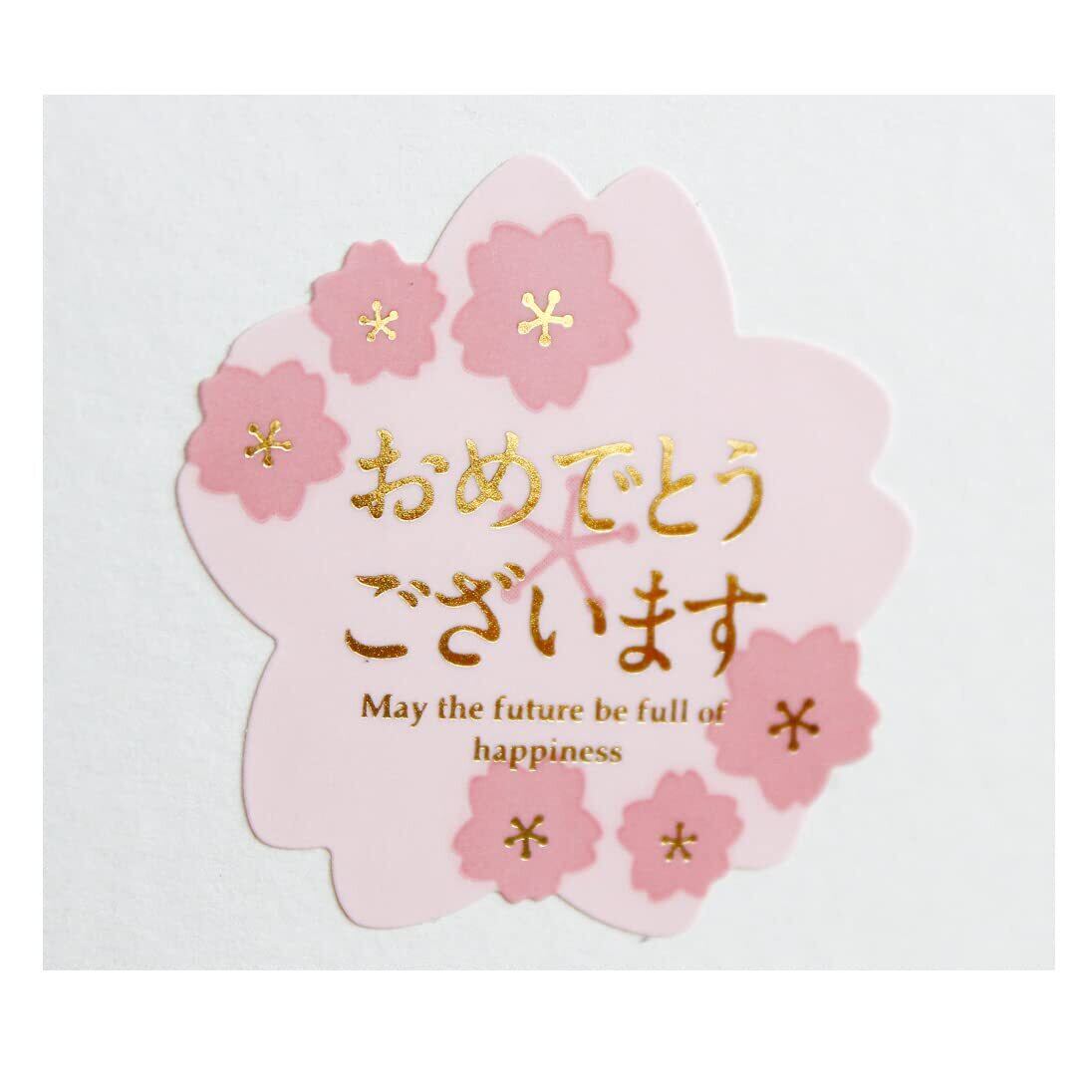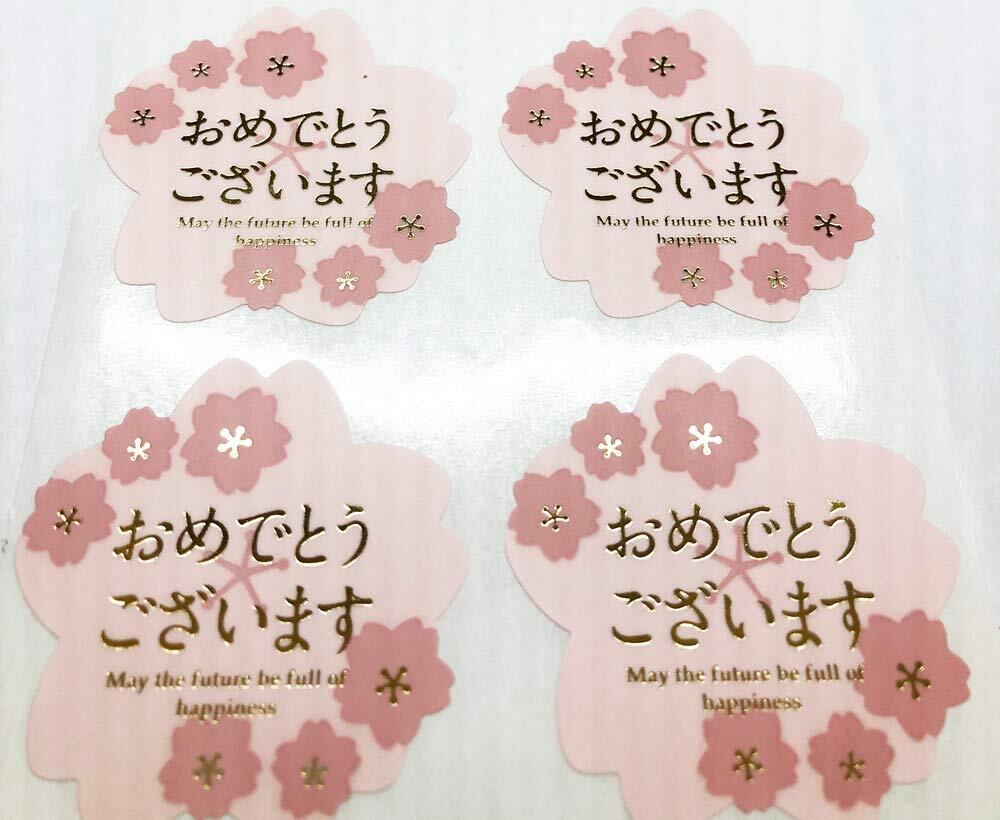 桜おめでとうございますシール 金箔押し