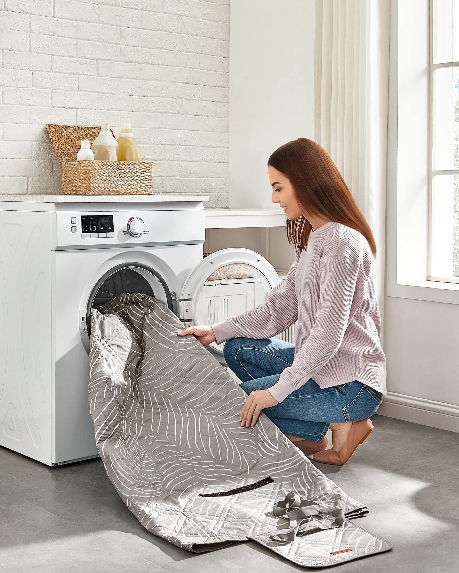 【商品仕様】素材:快適なポンジー生地+スポンジ+耐久性のある不織布+防水アルミ層。サイズ:200×200cm。本体重量(約):1.04kg。SONGMICSは製品の品質確保、商品に関しては何かご不明なところがございましたら、お気軽にお問い合わせ下さい