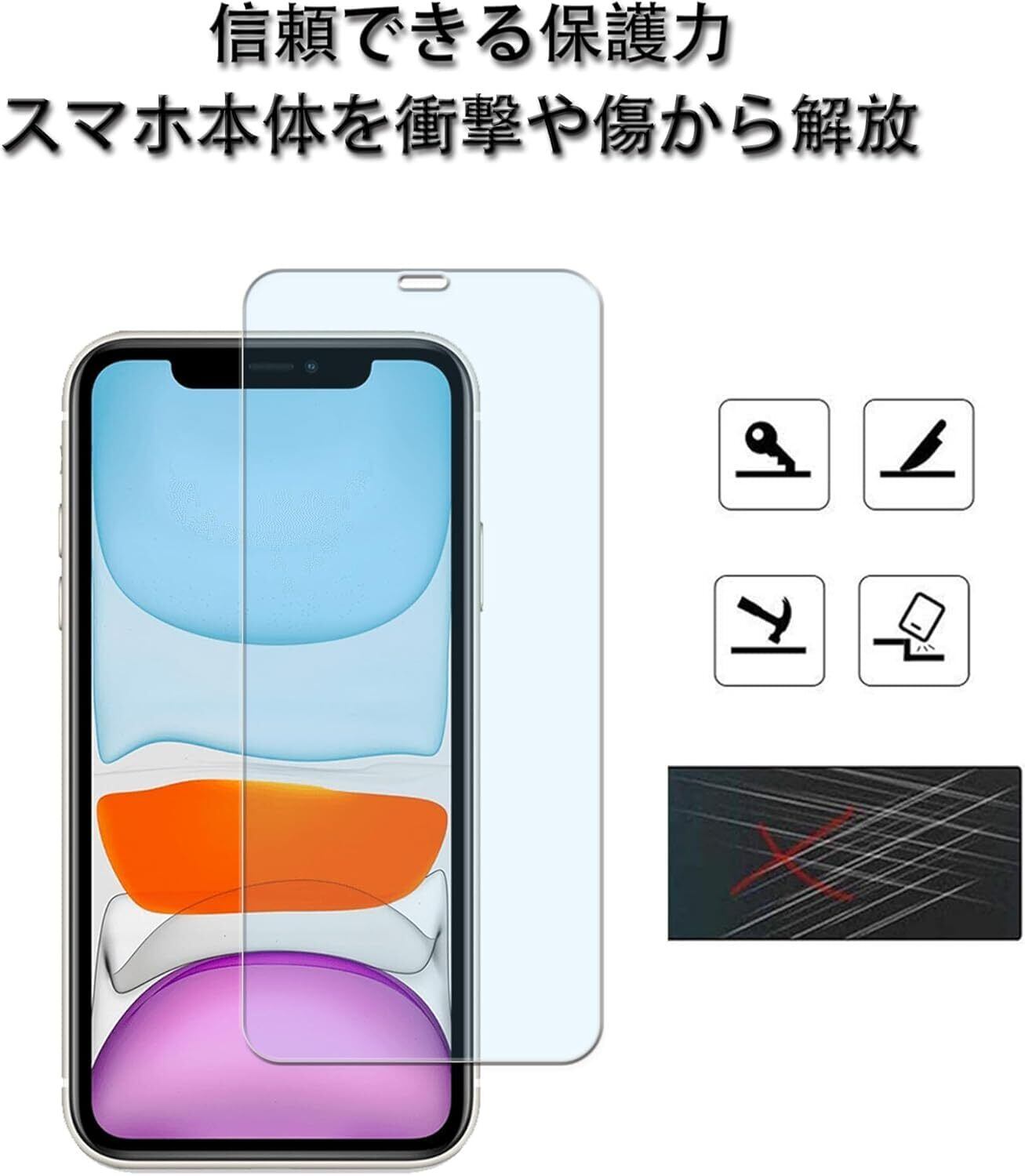 【対応機種-2枚入り】 iPhone11 / iPhoneXR 用 。【ブルーライトカット機能 】スマホの長時間使用による眼精疲労などを緩和します。【注意】(色あいなど画像と若干の違いがある場合があります。予めご了承下さい。)
