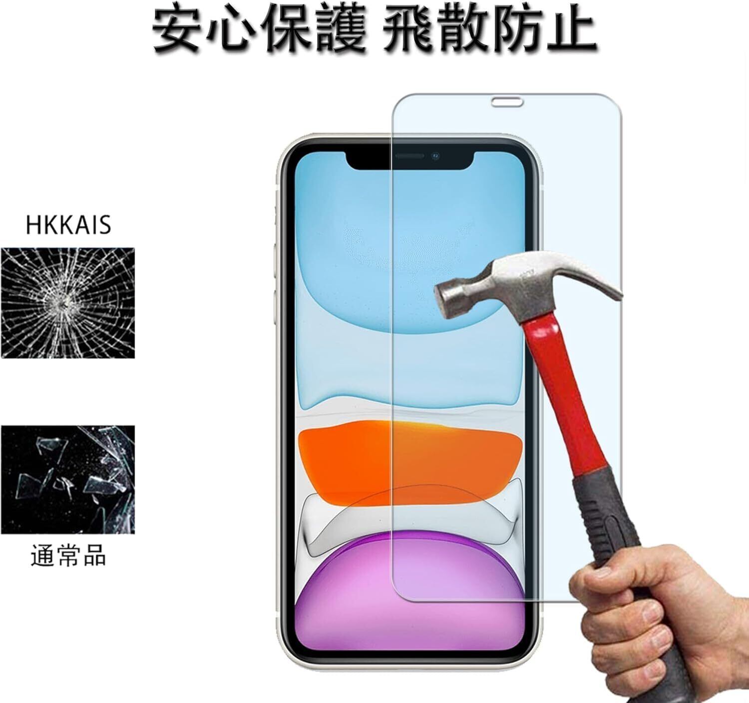 HKKAIS ブルーライトカット 目の疲れ軽減 93% iPhone11 / iPhoneXR 用 ガラスフィルム 日本製硝子採用 強化 ガラス 液晶画面 保護フィルム【2枚セット】