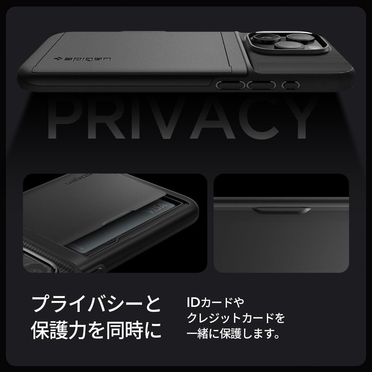 Spigen 【創業18年の技術力】 iPhone 15 Pro ケース 手帳型 カード 2枚 収納 耐衝撃 米軍MIL規格取得 レンズ保護 擦り傷防止 ワイヤレス充電 スリム・アーマー CS ACS06728 (ブラック) | hananoki