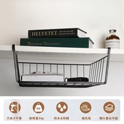 【商品仕様】サイズ:41*26*14.5cm。カラー:ブラック。耐荷重:約5kg。表面処理:焼付け塗装。厚さ3cm以内の吊戸棚の底板などに差し込んで使えます。