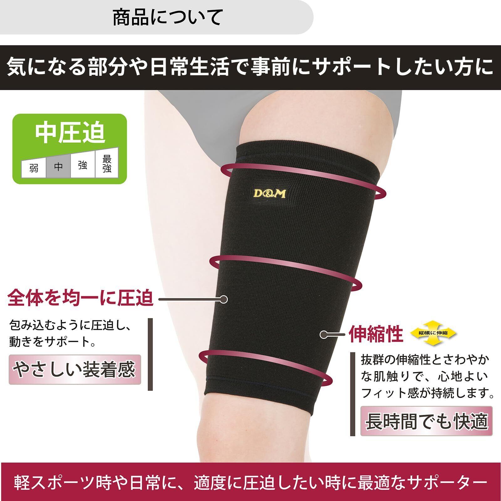 D&M(ディーアンドエム) 太ももサポーター 中圧迫サポーター もも用 日本製 左右兼用 黒 1個入 Sサイズ 922 日本製 固定 保温 伸縮 吸汗 速乾 高通気 サポート 日常生活 運動 スポーツ