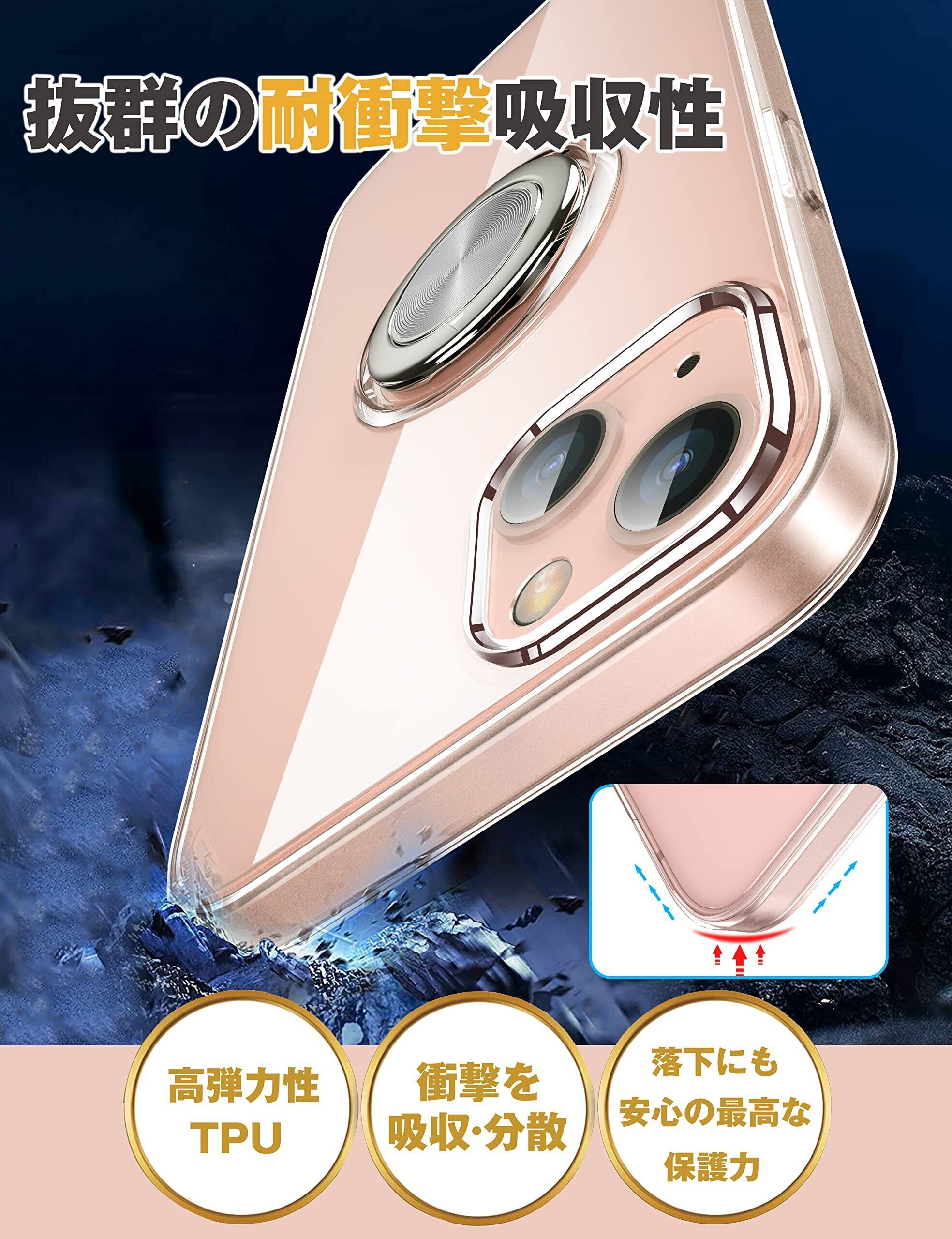OURJOY iPhone15 適用 ケース リング付き クリア アイフォン15 スマホケース 透明 TPU 耐衝撃 ストラップホール付き 一体型スタンド機能 車載ホルダー対応 アイホン15 携帯ケース カバー・クリア | hananoki