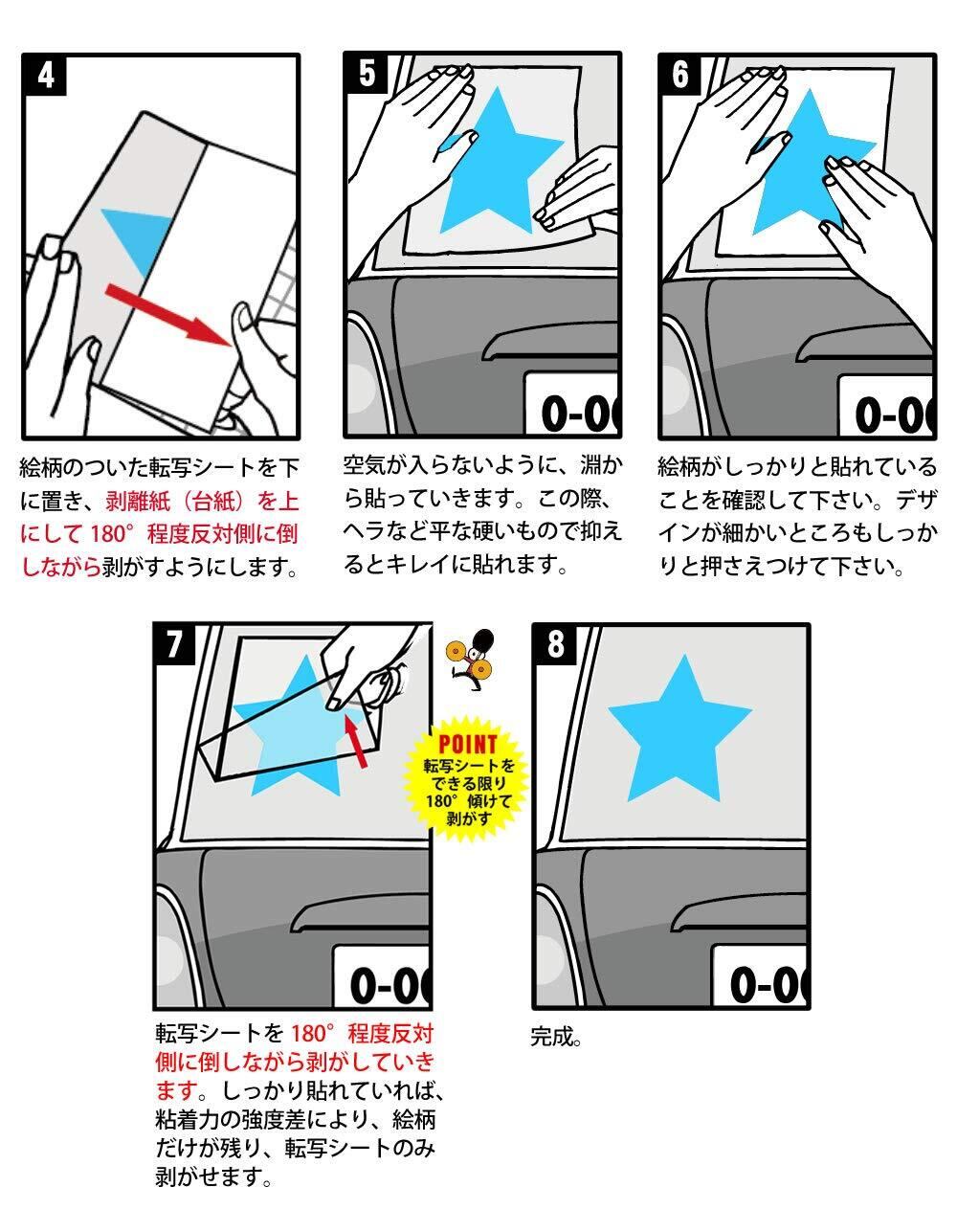 [よりお知らせ]粘着力の違いにつきまして、「従来版粘着力”弱”のほうがよかった」「改良版粘着力”強”の使用にて、使いやすい」「従来版粘着力”弱”だと弱すぎる」「改良版粘着力”強”だと強すぎる」などお客様からのご使用後のご感想が様々でございます。ご使用用途やお客様の感覚により、使いやすさ・ご意見が異なっております。ご使用後のご返品・交換は承っておりませんので、ご失敗なされないよう、A4サイズ1枚のお試し商品をご用意しております。ぜひお試し商品を試して頂いてから商品のご購入をご検討頂けますと幸いです。 【サイズがぴったりA4サイズではございません。約20cm×約30cmとなります】オリジナルステッカーが簡単に作れる、カッティング用シートとこの転写フィルムさえあれば、ステッカーが自由に作れる。素材が薄いため、細かい文字や曲面がある図も作業がしやすいのが特徴です。 市販のカッティングマシン・カッティングブロッターを使用することができます。 切り取ったカッティング用シートなどに、この転写フィルム(アプリケーションフィルム)を全体に貼り、カッティング用シートと一緒に剥がして、貼りたい箇所に貼って、あとは、転写シートだけを剥がして完成 使用例: スキースノーボード、サーフィンなどのアウトドア用品 バイク・カー用オリジナルステッカー コンサート用うちわ スーツケースの目印に 店舗などショーウィンドーにも●ステッカーをはがした際に、日焼けあと、のり残りが生じる場合がありますが、当社では一切の責任を負いかねます。予めご了承ください。●貼り付け時によるフィルムの破損(ゆがみ、汚れ、気泡等)及び貼りはがしの際に発生するキズ、破損等につきましては当社では一切の責任を負いかねます。●当店では、お求めやすい価格にてご提供させて頂くために、長大なロールから切り売り販売しております。その為どうしてもロールの伸縮によりロールのはじめと終わりのほうで粘着力が若干変化してしまう場合ございます。粘着力を統一したい場合などは、同時期(同カート)の購入をお勧めいたします。できる限り同ロールを使用しカット致します。●仕入れ時期により粘着力が若干異なる場合がございます。ご了承くださいませ。