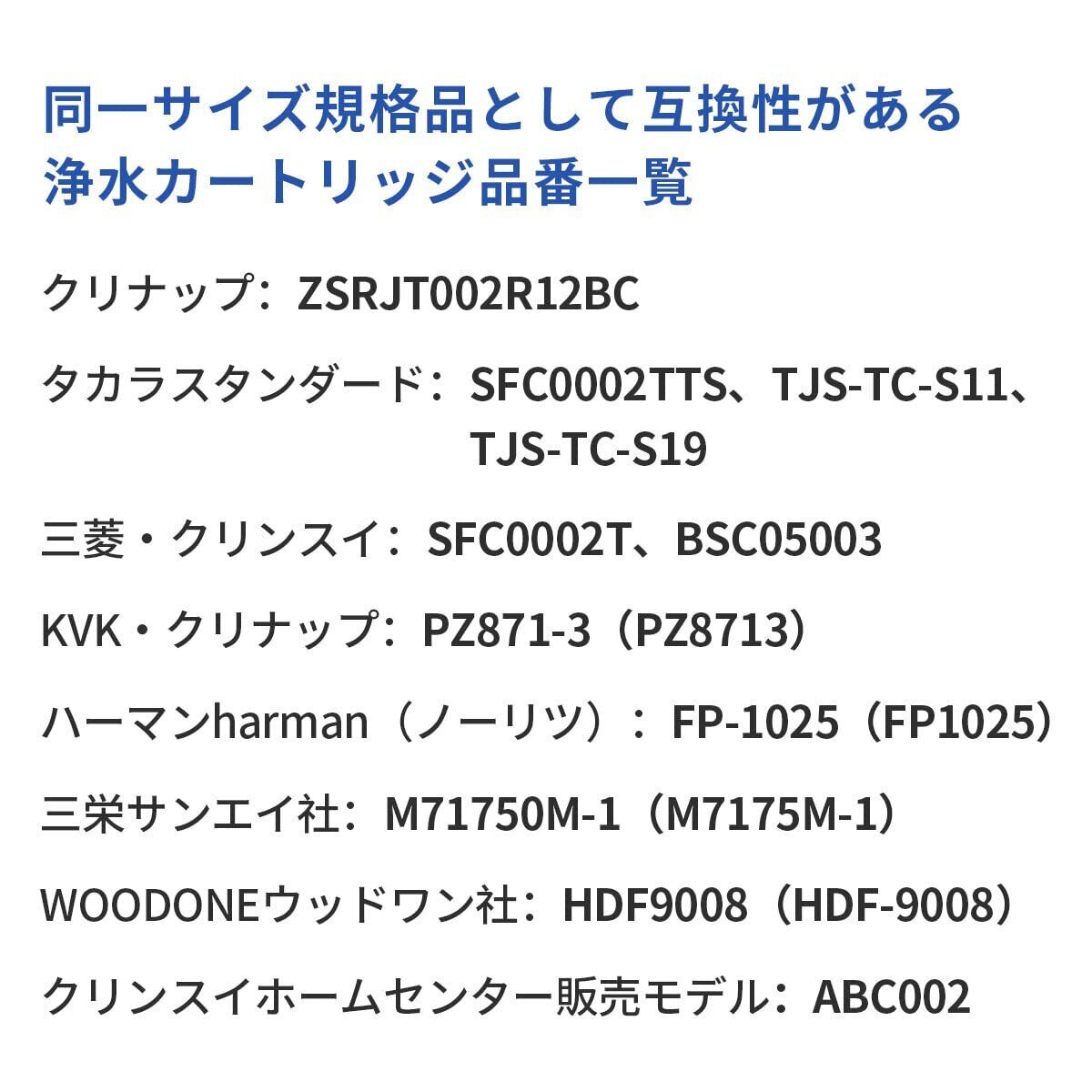【他の互換性のある浄水カートリッジ】SFC0002TTS、ZSRJT002R12BC、PZ871-3、FP1025(パッケージや品番・ラベルが違うだけで中身は同商品、同性能ですので共通してお使い頂けます。) ※購入検討商品に関してご不明な点やご不安をお持ちのお客様は、ご購入前にお問い合わせください。