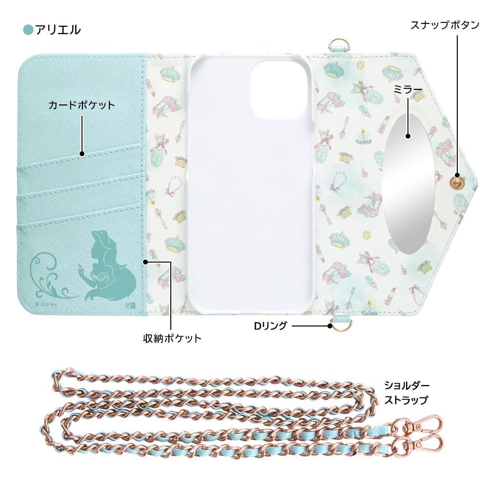 iPhone 15 ケース ディズニー/手帳型レザーケース Collet ショルダーストラップ付き/アリエル