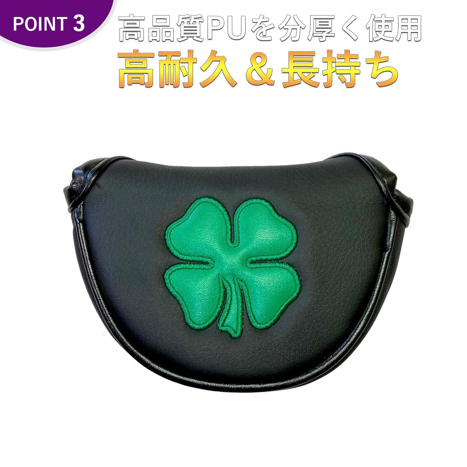 ゴルフ ヘッドカバー パターカバー オデッセイに対応 レッド小型マレットタイプ対応 マグネット付け クローバー模様