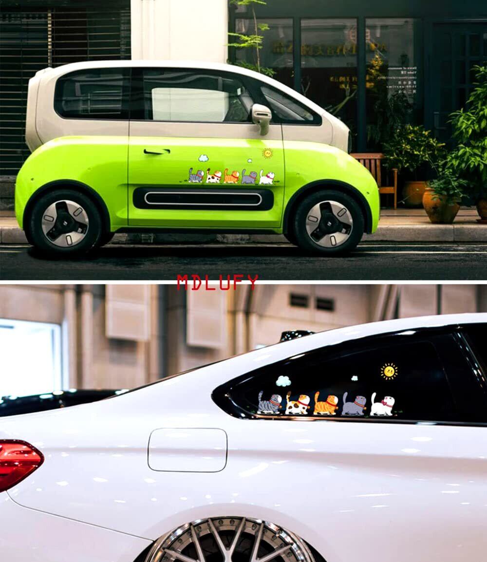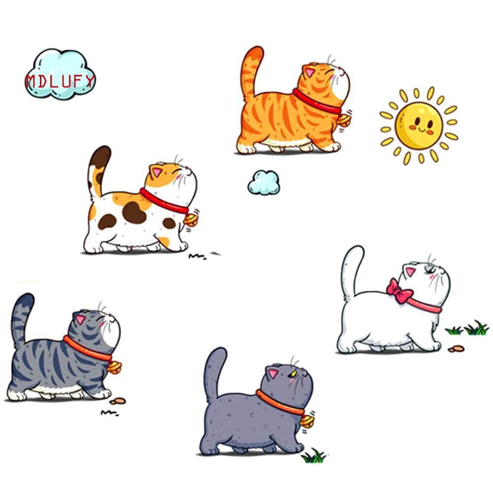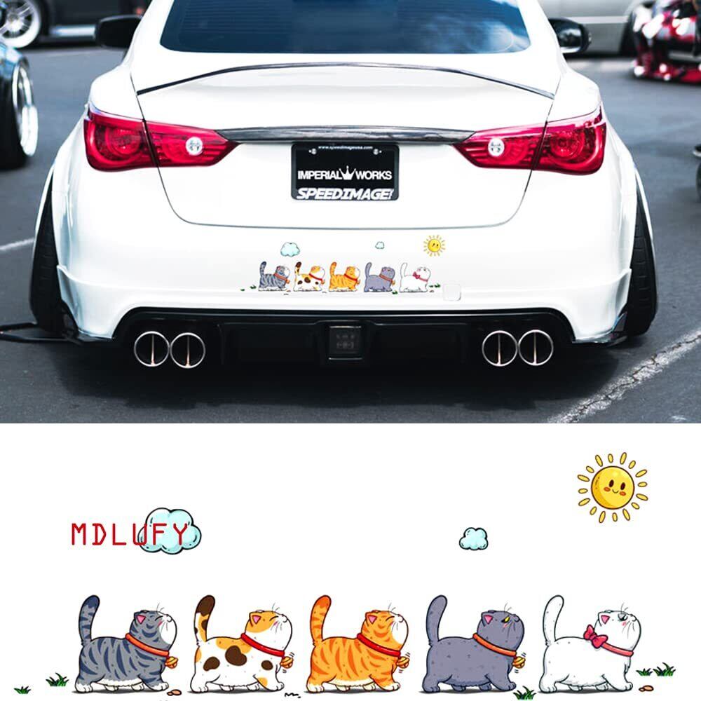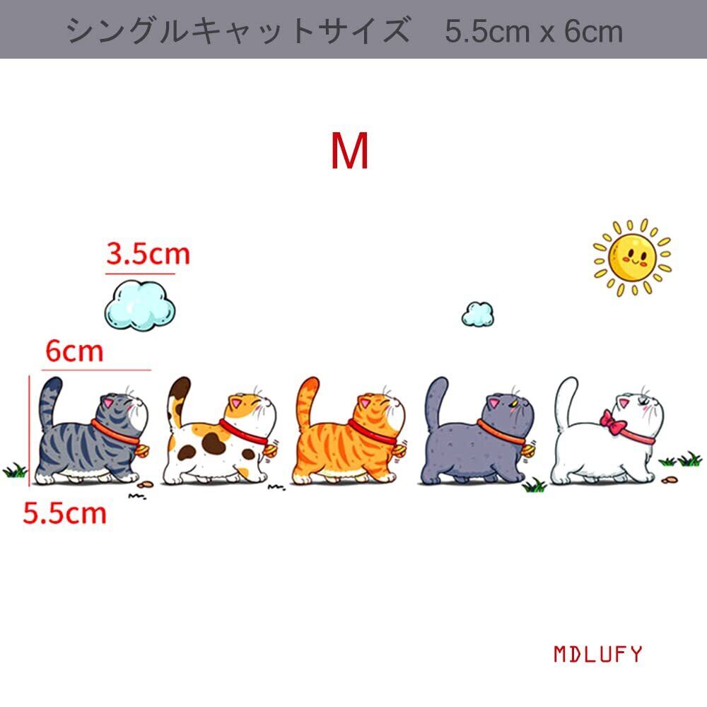 MDLUFY 猫すてっかー 車 カーステッカー ペットの猫猫 イラスト 防水仕様 面白ステッカー 車やバイク キズ隠し 凹み隠しに かわいい 装飾 シール 取り付け簡単 汎用 車ドア 窓 ウォールステッカー (5匹の猫セット-M)