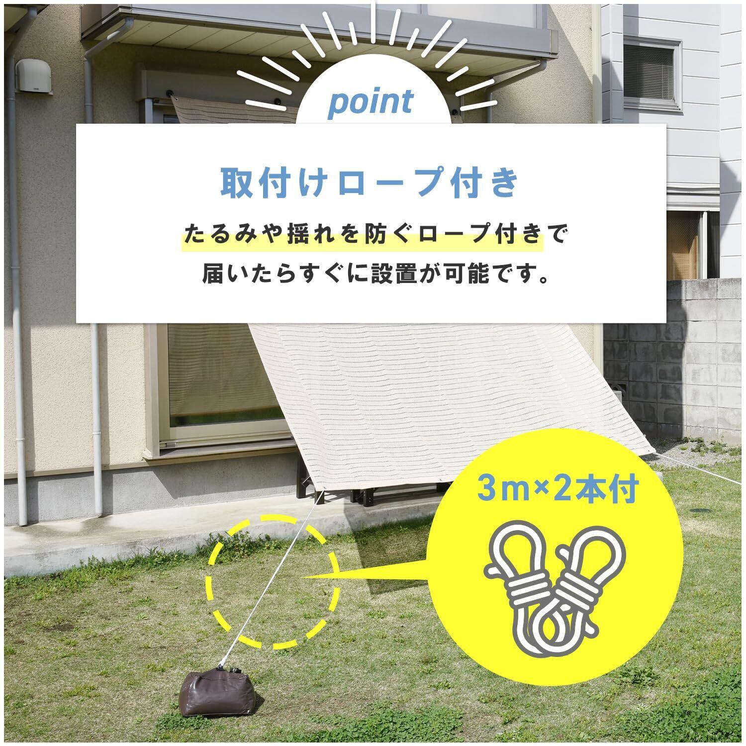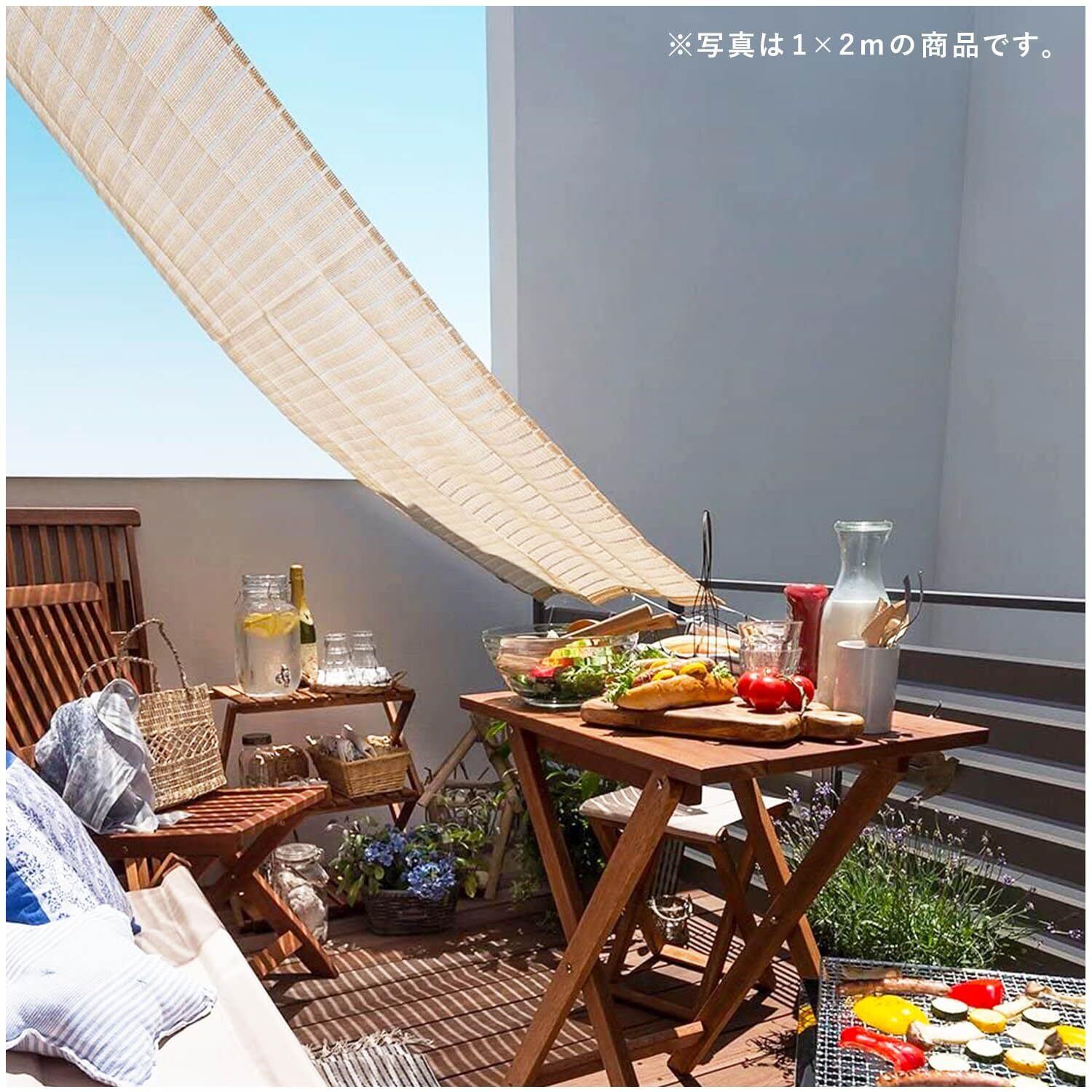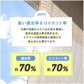 【特徴】日よけや目隠しに便利なガーデンシェードです。カラーはアイボリーです。真夏の暑い日差しを遮り自然の風を取り入れ、エアコンの使用も抑えられるエコなアイテムで、UVカット率も約70%と高いので肌の日焼けや家具や床の劣化も防ぐ事ができます。外からの目隠し効果はあるものの、内部から外部への見通しは良いので圧迫感がありません。またインテリア性もバツグンで、工事不要で簡単に取り付けることができます。汚れてしまっても、水洗い可能なのでお手入れがラクです。