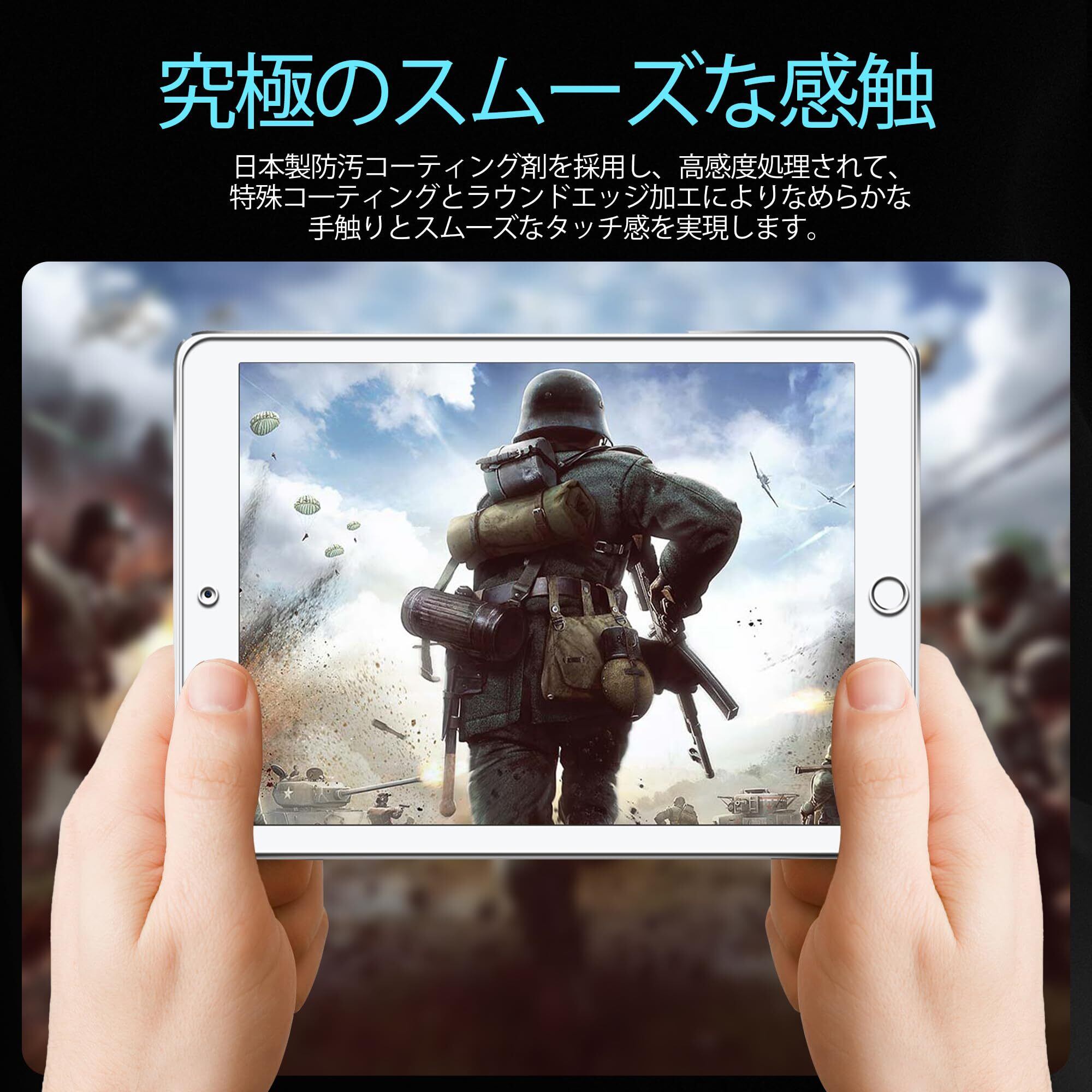 【対応機種】ipad 9.7 インチ / 5世代2017 / 6世代 2018 / iPad Air 2 / iPadAir 2013 / iPad Pro 9.7 専用 ガラスフィルム。【注意】この電話の画面の端は湾曲しているため、保護フィルムのサイズが丁度良い場合、しっかりと貼り付けられず、白いエッジやシェルとの干渉などの問題があるため、保護フィルムは画面よりも小さいです。