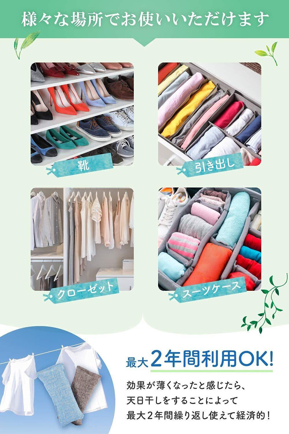 【様々なシーンで】靴箱 タンス 衣装ケース バッグ スーツケース の中など様々な場所でご利用いただけます。また、スニーカー 安全靴 革靴 ブーツ ヒール など幅広く使用可能!