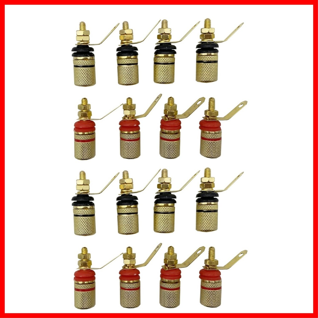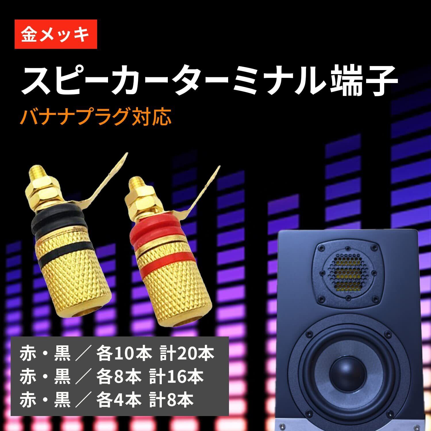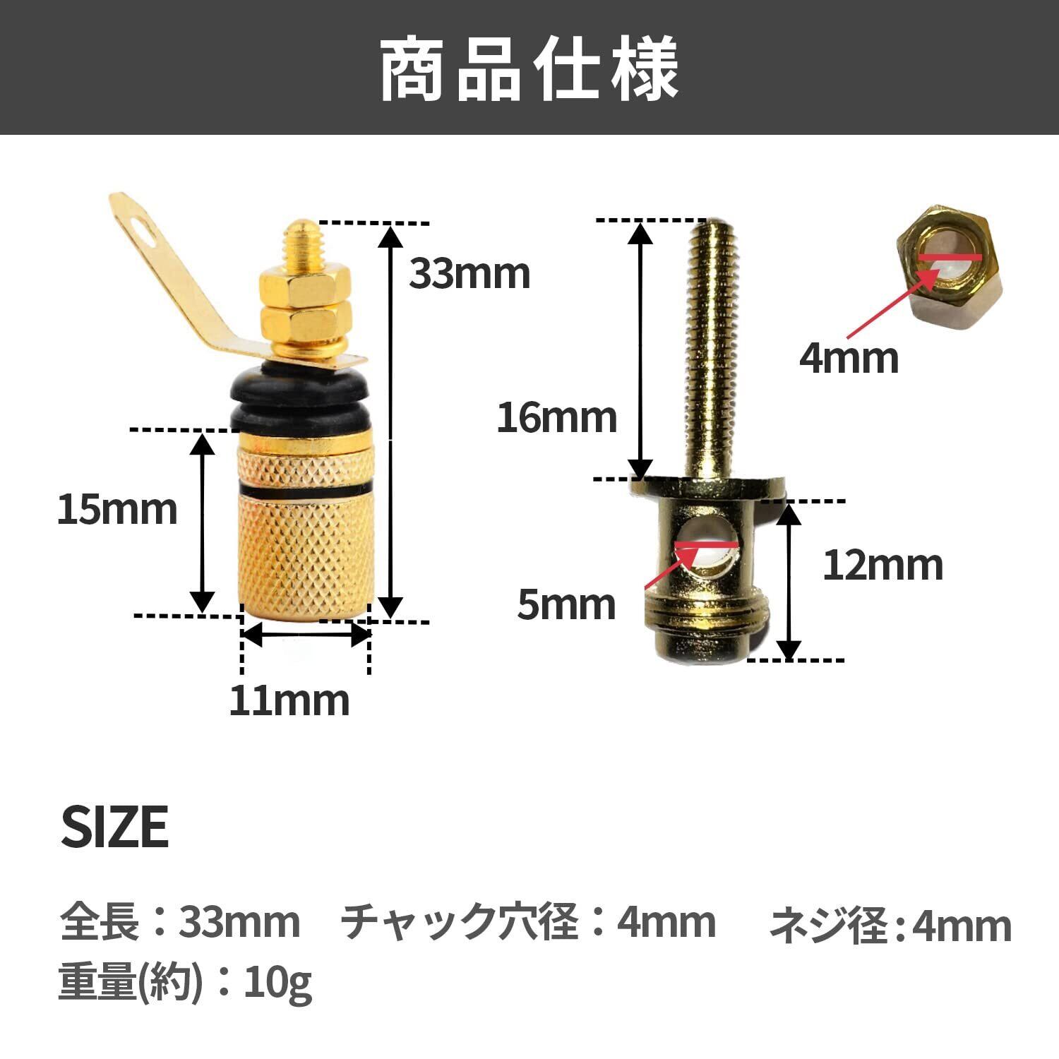 shymie スピーカーターミナル 端子 金メッキ バナナプラグ対応 ターミナルリスト ピン 3.3cm オーディオ レッド ブラック 各8本 16本