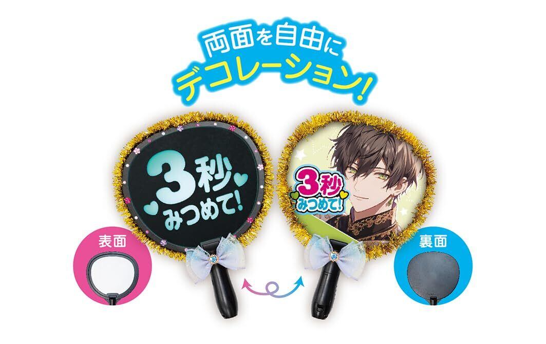推しへの愛を伝えるメッセージが暗闇でくっきり光る推し活グッズの新製品『うちわ型推しライト』 ●本製品は、推しうちわとペンライトを合体させる発想から生まれた、文字が光るうちわ型のライトです。当社が独自開発した「推し文字くっきり発光パネル」(特許出願中)を採用 。うちわ表面の全体がムラなく美しく光ることで、文字が遠くからもくっきり良く見えます。 ●ライト機能は10色の推しカラーで光らせることができます。 両面を自由にデコレーションしてデザインをカスタマイズすることも可能です。 「推しうちわ×ペンライト」という発想から生まれた新しいアイテムで、推しに想いを届けてみませんか? ※参加されるイベントの規約を熟読の上、本製品を使用してください。
