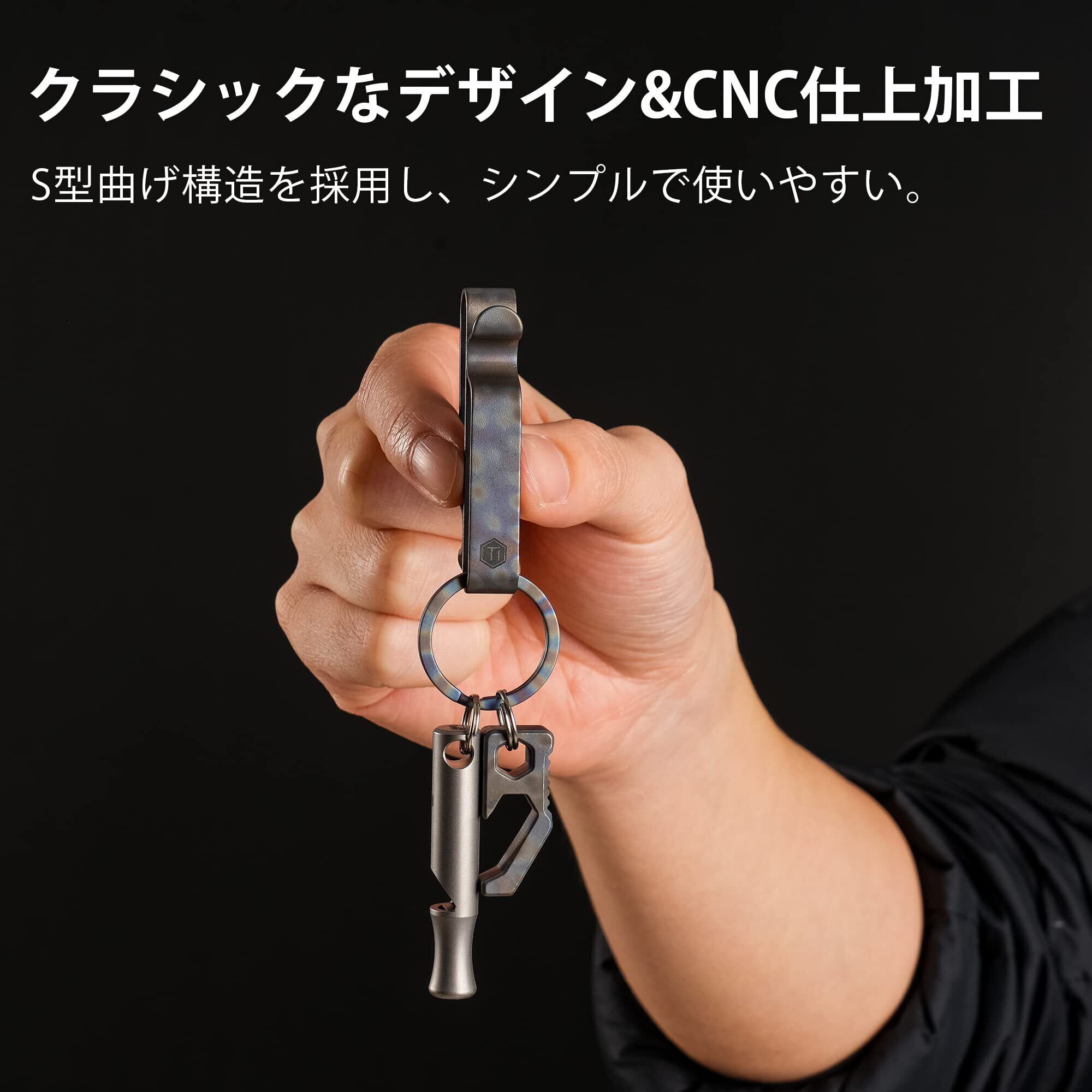 [KeyUnity] KM00 キーホルダー ベルトキーホルダー キーリング付き ベルト帯挟み 両側S型 チタンキー シンプル 軽量 防水性 耐食性 100%チタン製 4つ色 シルバー ギフト (KM00) | hananoki