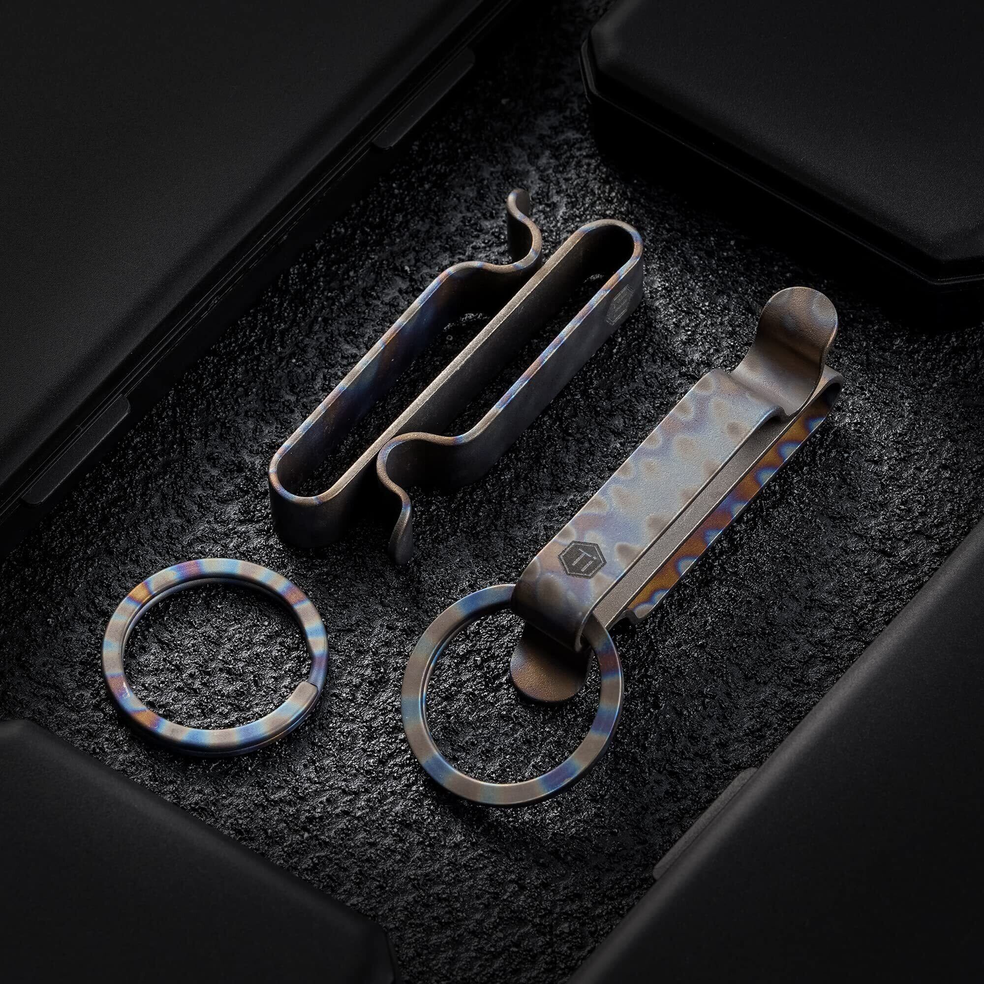 [KeyUnity] KM00 キーホルダー ベルトキーホルダー キーリング付き ベルト帯挟み 両側S型 チタンキー シンプル 軽量 防水性 耐食性 100%チタン製 4つ色 シルバー ギフト (KM00)