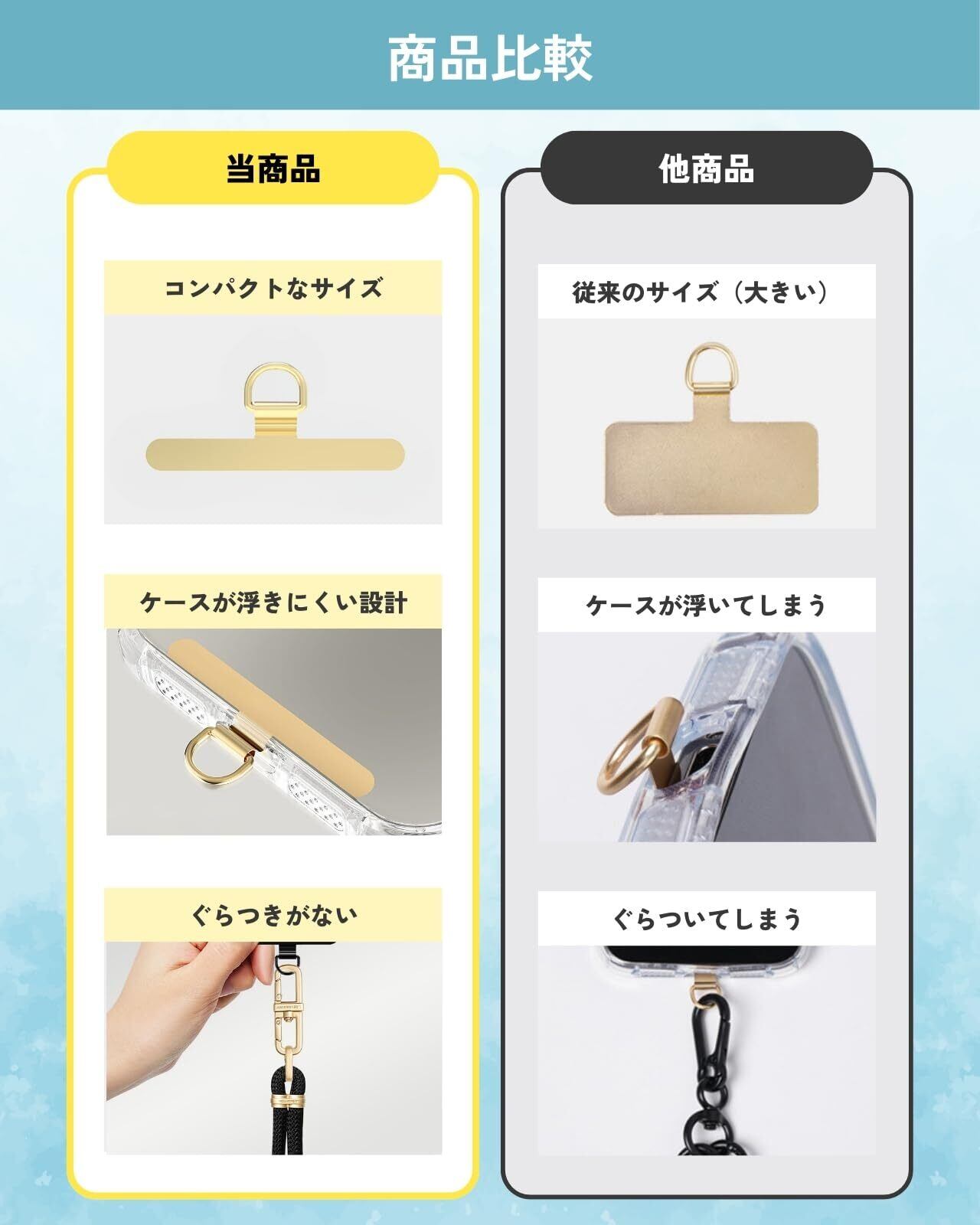 [LICOM] 【ちぎれるストレスから解放】 スマホ ストラップホルダー 極薄0.2mm 金属製 タグパッチ 落下防止 充電影響なし 首掛け 斜めがけ 全機種対応 (ブラック)