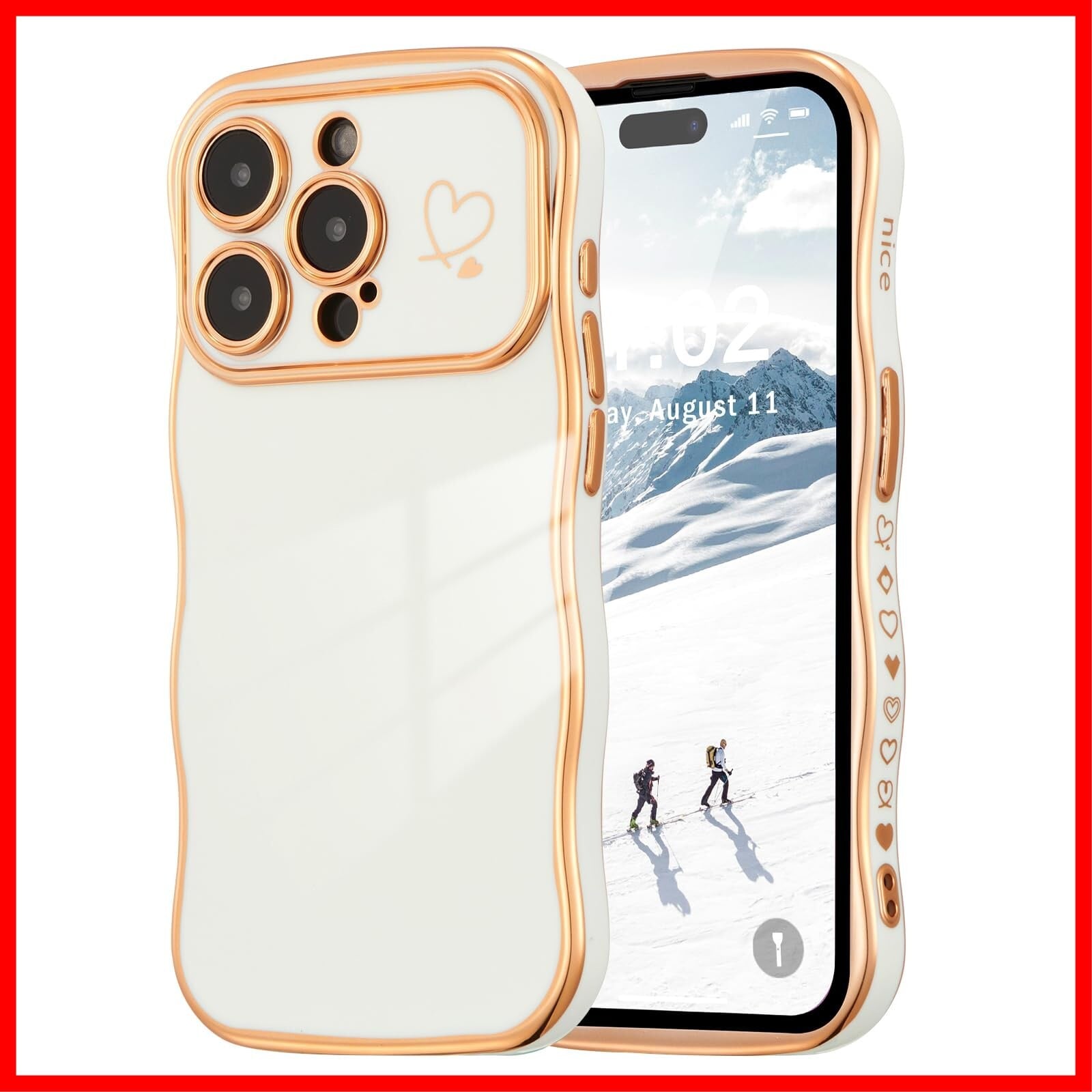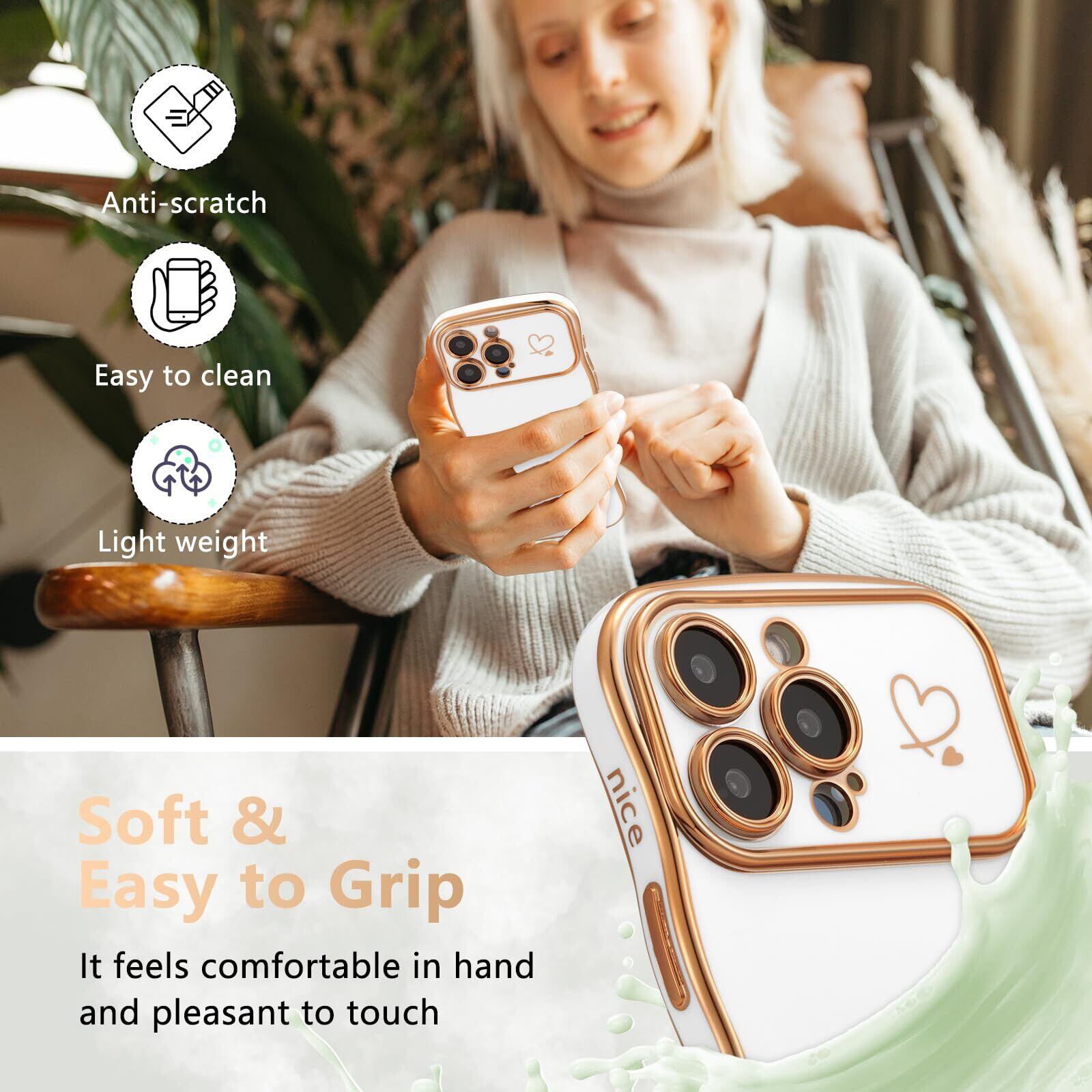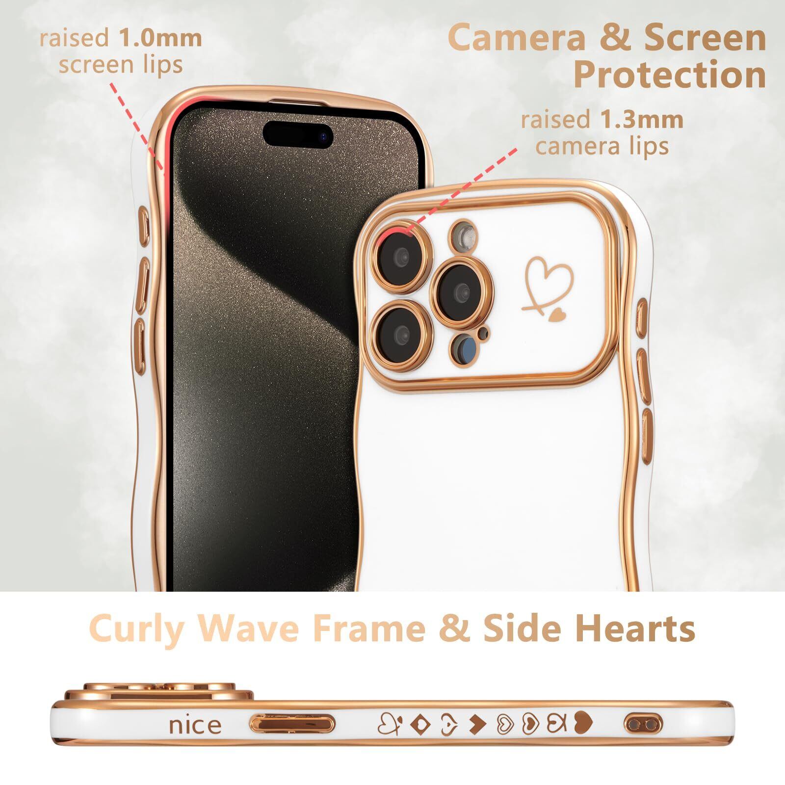 ZTOFERA iPhone 15 Pro Max 用 ハートケース 人気 おしゃれ iPhone 15 Pro Max 波型ケース 柔軟な TPU シリコン ウェーブ デザイン スマホケース メッキ加工 ソフト 軽量 耐衝撃 韓国 可愛い アイフォン 15 Pro Max ケース 女子 女性 携帯電話カバー ワイヤレス充電対応 (ホワイト) | hananoki