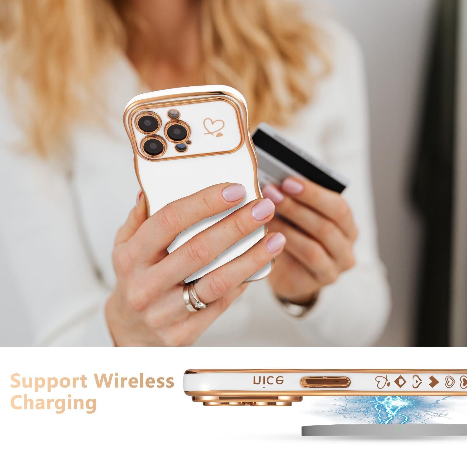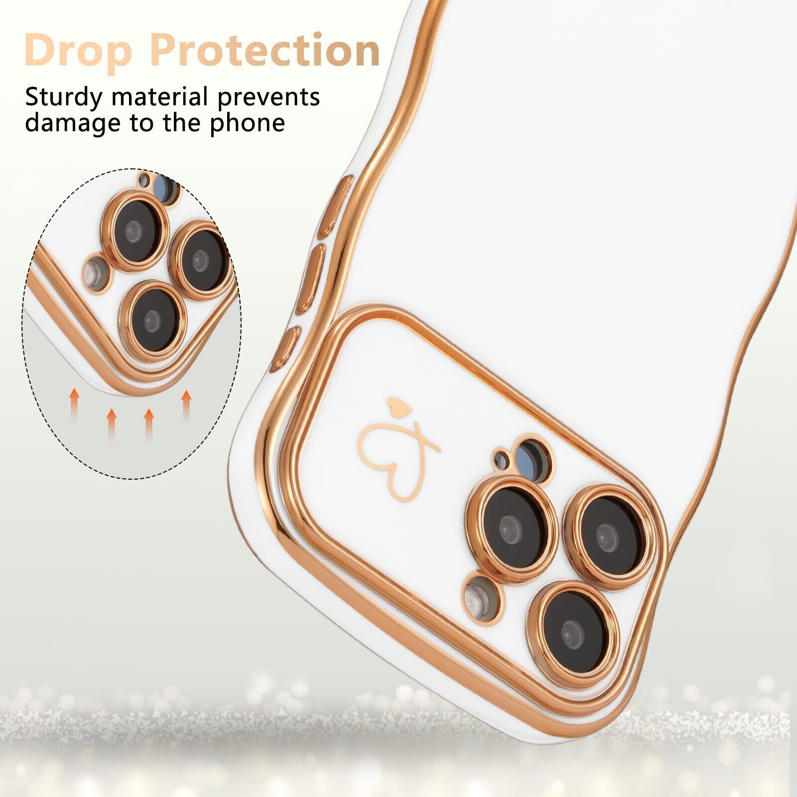ZTOFERA iPhone 15 Pro Max 用 ハートケース 人気 おしゃれ iPhone 15 Pro Max 波型ケース 柔軟な TPU シリコン ウェーブ デザイン スマホケース メッキ加工 ソフト 軽量 耐衝撃 韓国 可愛い アイフォン 15 Pro Max ケース 女子 女性 携帯電話カバー ワイヤレス充電対応 (ホワイト)