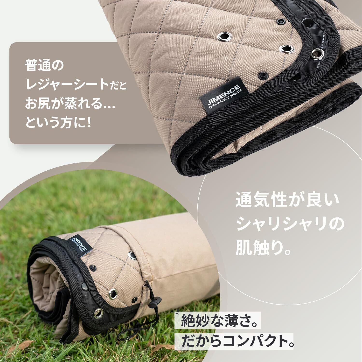【素材】表面:シャリシャリの心地良い肌触りで通気性が良く、汗をかいた素肌で触れても”ぬるっ”としません。/中綿:中綿を詰めていますので軽度のクッション性があります。スポンジに比べて畳みやすく、通気性も良いのが特徴です。/裏面:防水加工(PUコーティング)を施していますので水たまりの上に敷いても染みません。ピクニックや日帰りレジャーならこれ1枚でOKです。