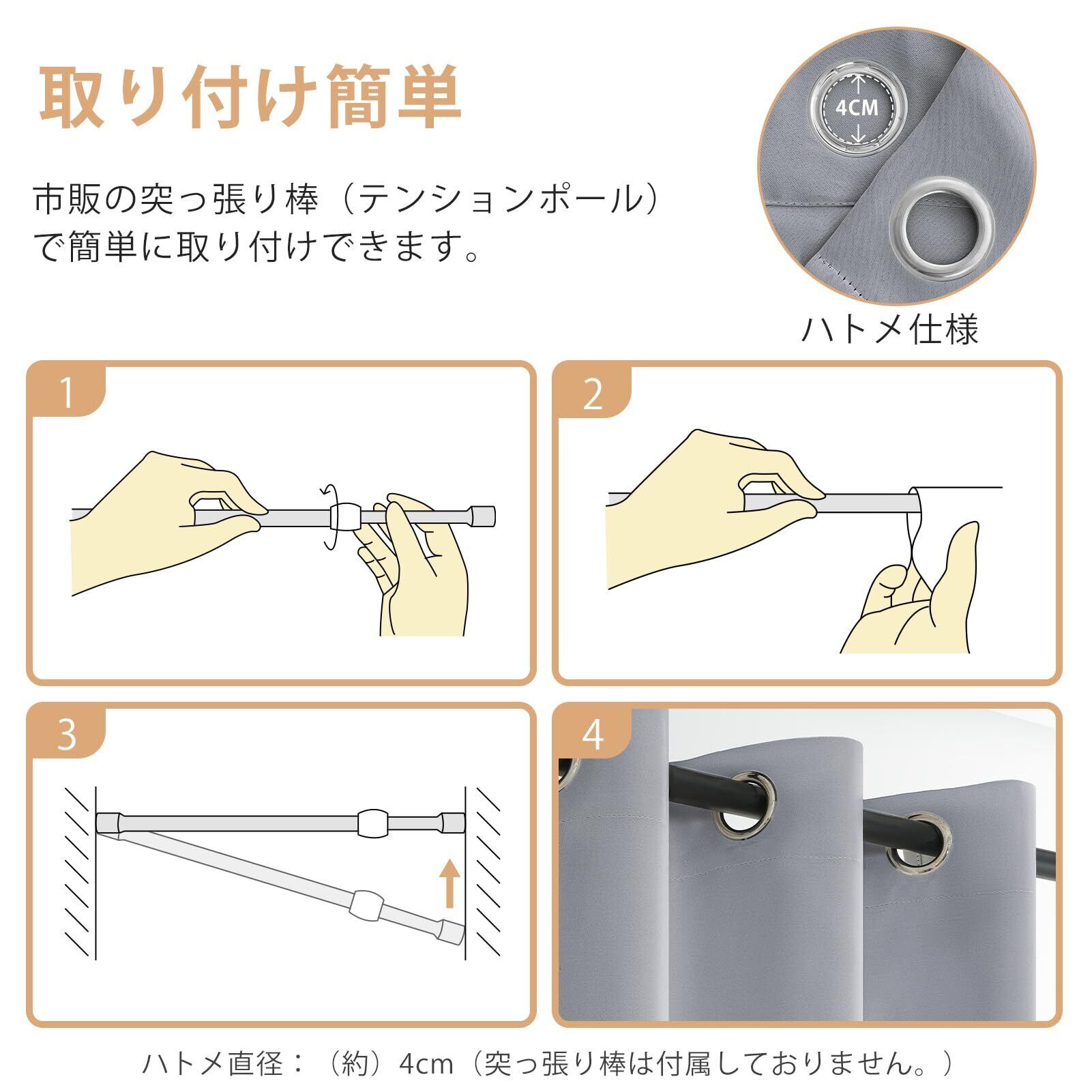 【サイズ】 :幅120cm*丈200cm「幅60cm-90cm範囲の設置場所に適応しております」ハトメ直径:約4cm。
