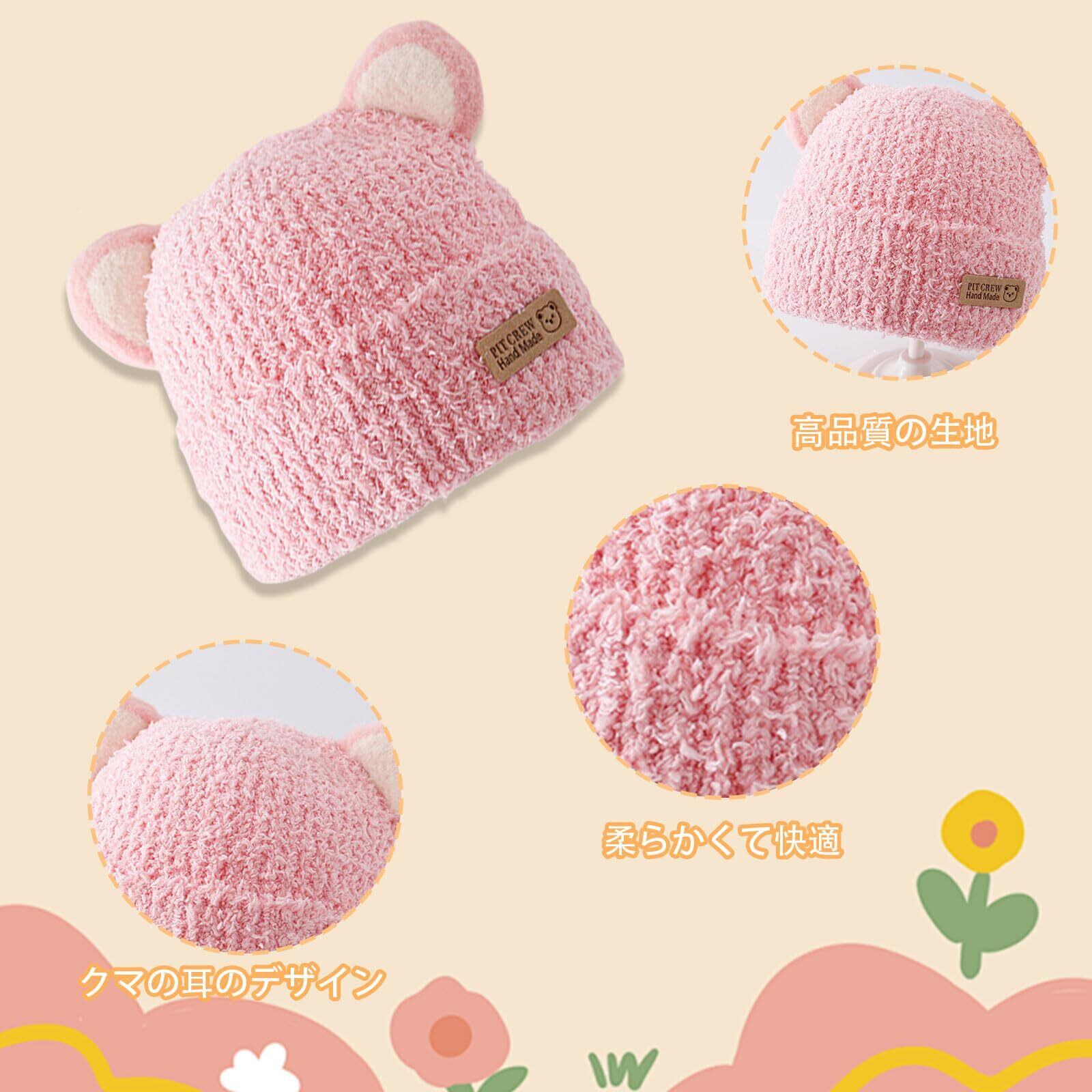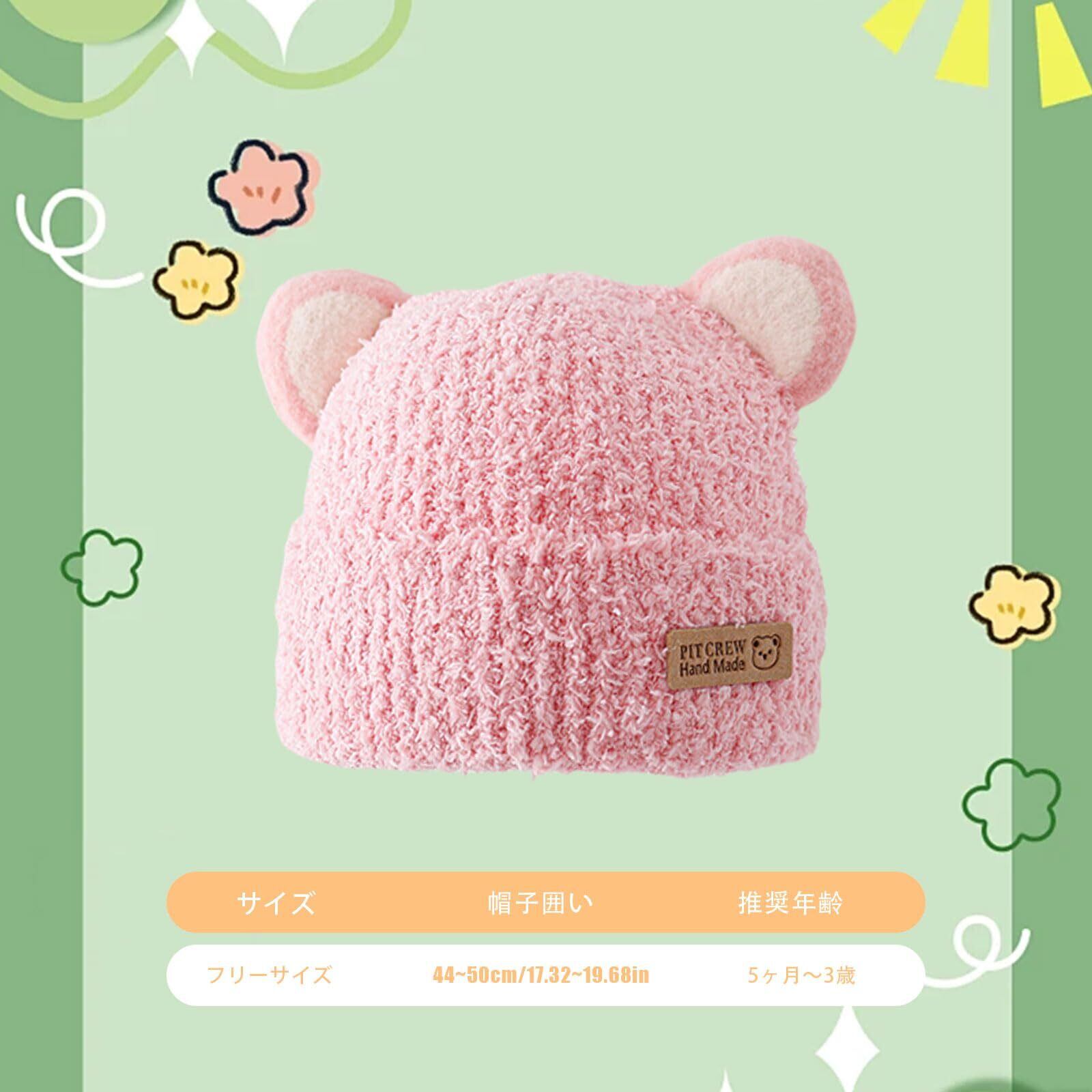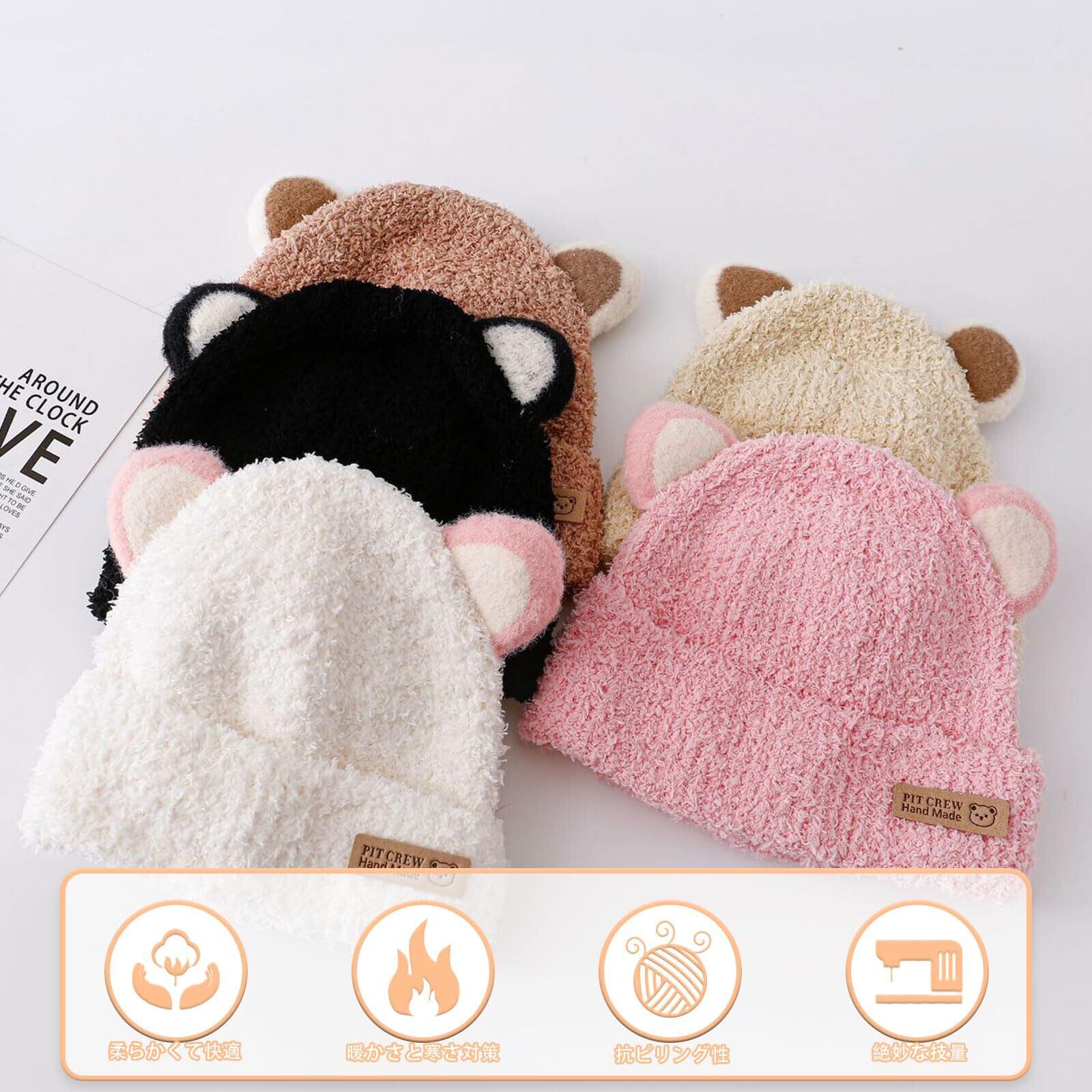 [Kingsiely] ベビー 帽子 キッズ ニット帽 かわいい クマ キャップ 耳付き 赤ちゃん用 女の子 男の子 通園 通学 お出かけ 防風防寒 暖かい 春 秋 冬 プレゼント フリーサイズ