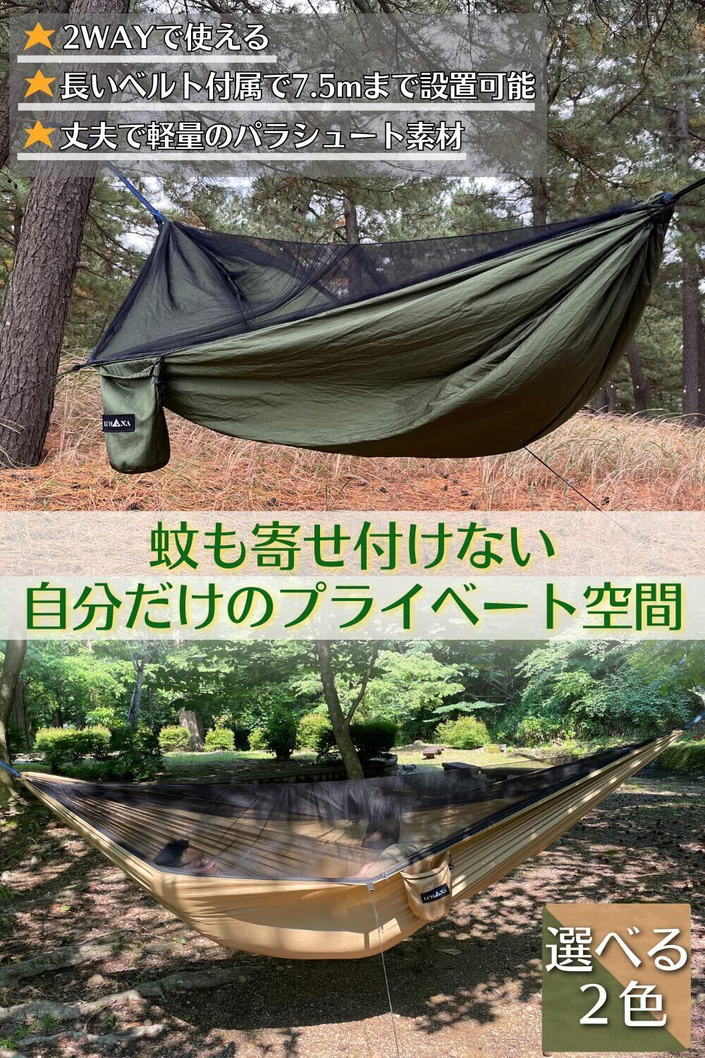【日本ブランド】LUHANA (ルハナ) ハンモック 蚊帳 付き ソロ キャンプ 軽量 耐荷重300kg ベルトの長さ3m 設置範囲超広い