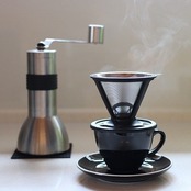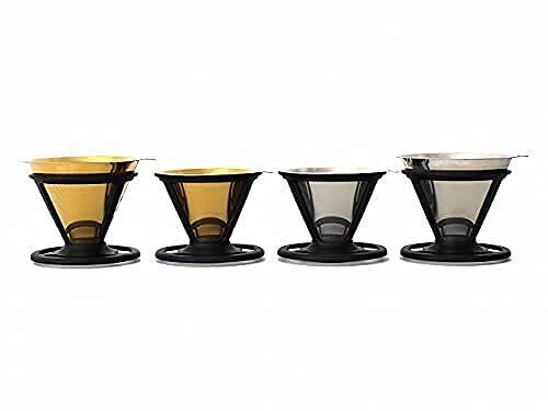 最高級ステンレスSUS304(18-8)を使用した1-2人用のコーヒードリッパーの改良版です。内側の超微細メッシュを一段階粗い0.018mm(18μm)にすることで目詰まりしにくくなりました。内側の微細メッシュ(0.018mm)で雑味の元となる微粉をカットしつつ程良くお湯を保ち、外側の微細多孔フィルター(0.4mm) でじっくり旨み成分を抽出することができるので、クリアーかつコクのある美味しいコーヒーを淹れることができます。また、コーヒーオイルが適度に抽出されるので、紙フィルターで淹れた時とは違う旨みを味わうことができます。