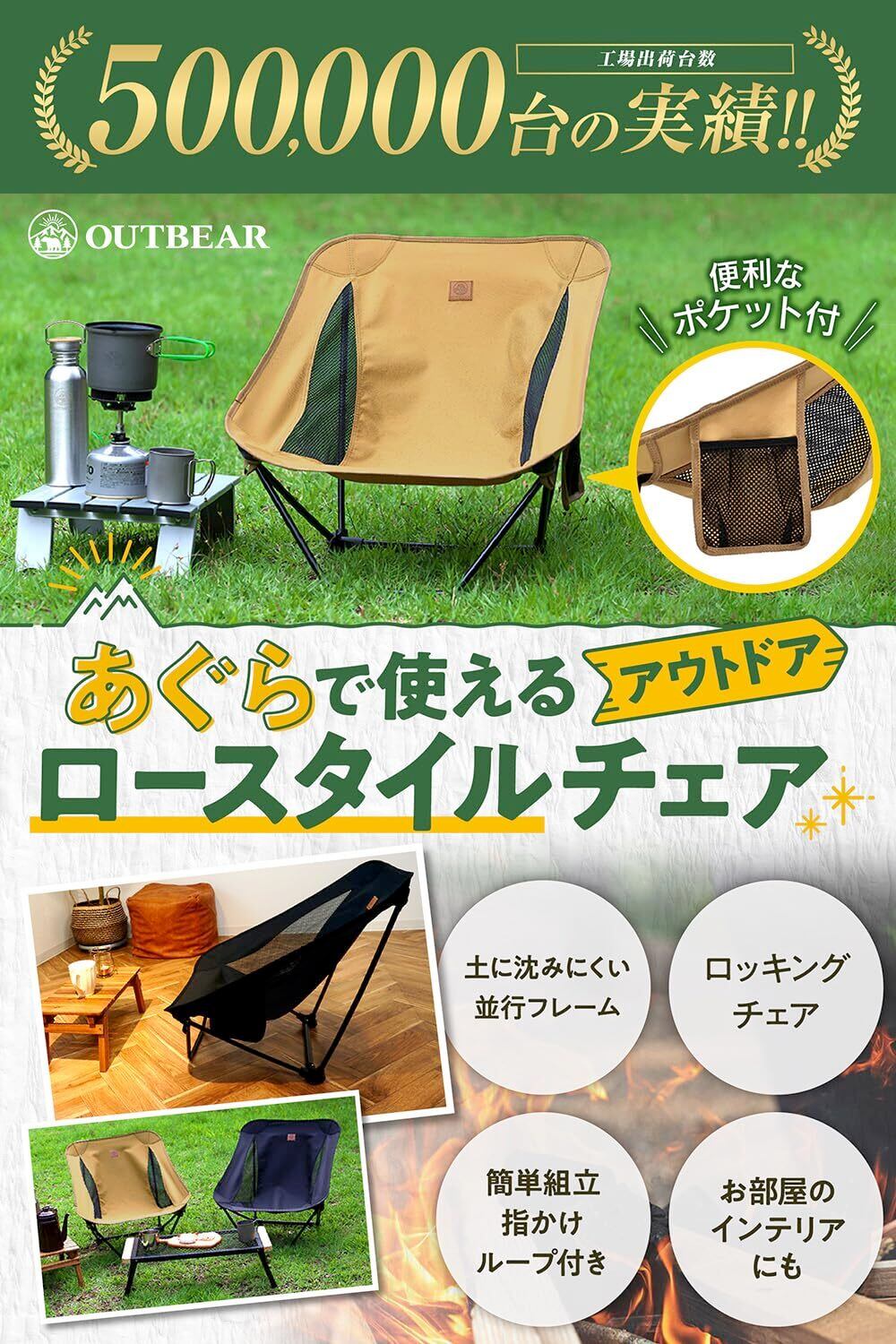 OUTBEAR【超軽量850g・あぐらで使える】 アウトドアチェア ローチェア グランドチェア あぐらチェア キャンプ [国内検査機関で耐荷重120kg試験済み]