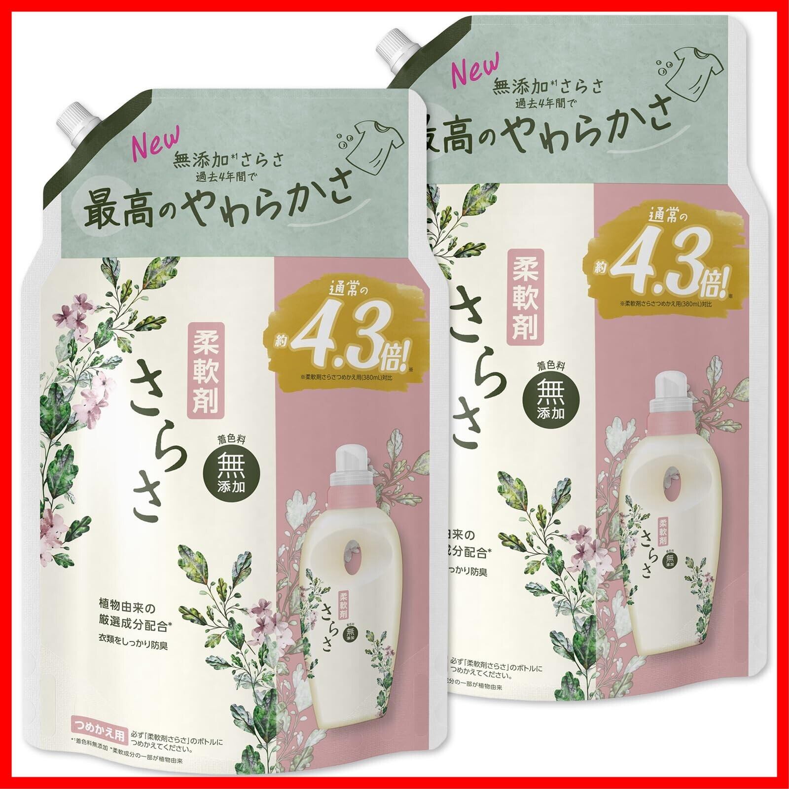 さらさ 柔軟剤 1,640mL×2袋 無添加 ピュアソープの香り 植物由来の厳選成分配合 詰め替え 【まとめ買い】 [大容量]
