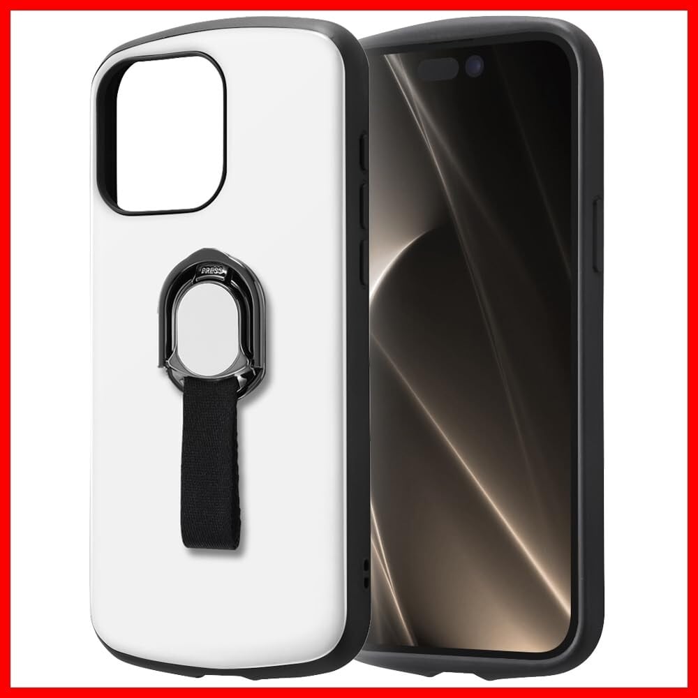 iPhone15 ProMax ケース 耐衝撃 2層構造 おまけリング付き スタンド機能 カメラ保護 ストラップホール付き アイフォン 15 プロマックス カバー/ホワイト